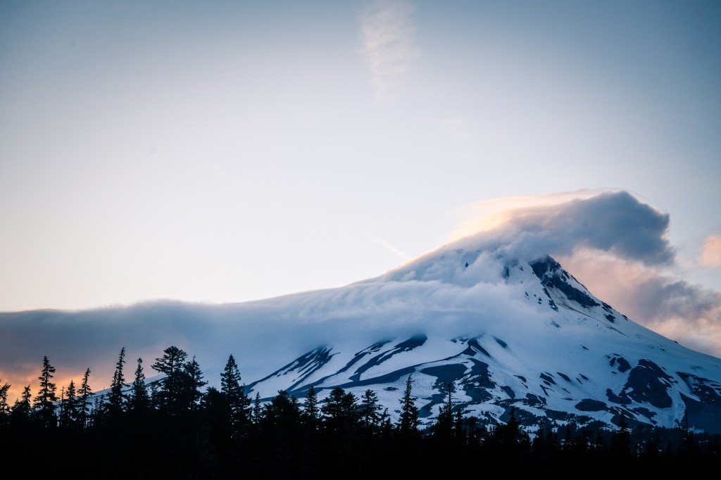 I had a picture perfect view of the Newton-Clark Headwall from my camp on Bennet Pass, directly across from the Mount Hood Meadows ski area. The book certainly wasn’t lying. It was steep… steep… steep. However, I know better than to judge a route from the road, as nearly all mountains fall victim to an optical illusion that makes slopes look steeper when viewed from afar. After a lovely evening of hanging out with a Portland local and shooting the sunset alpenglow with my new Fujiflim XT-2 camera, I set an alarm for 4:00AM and curled into the trunk of my petite Hyundai Elantra.