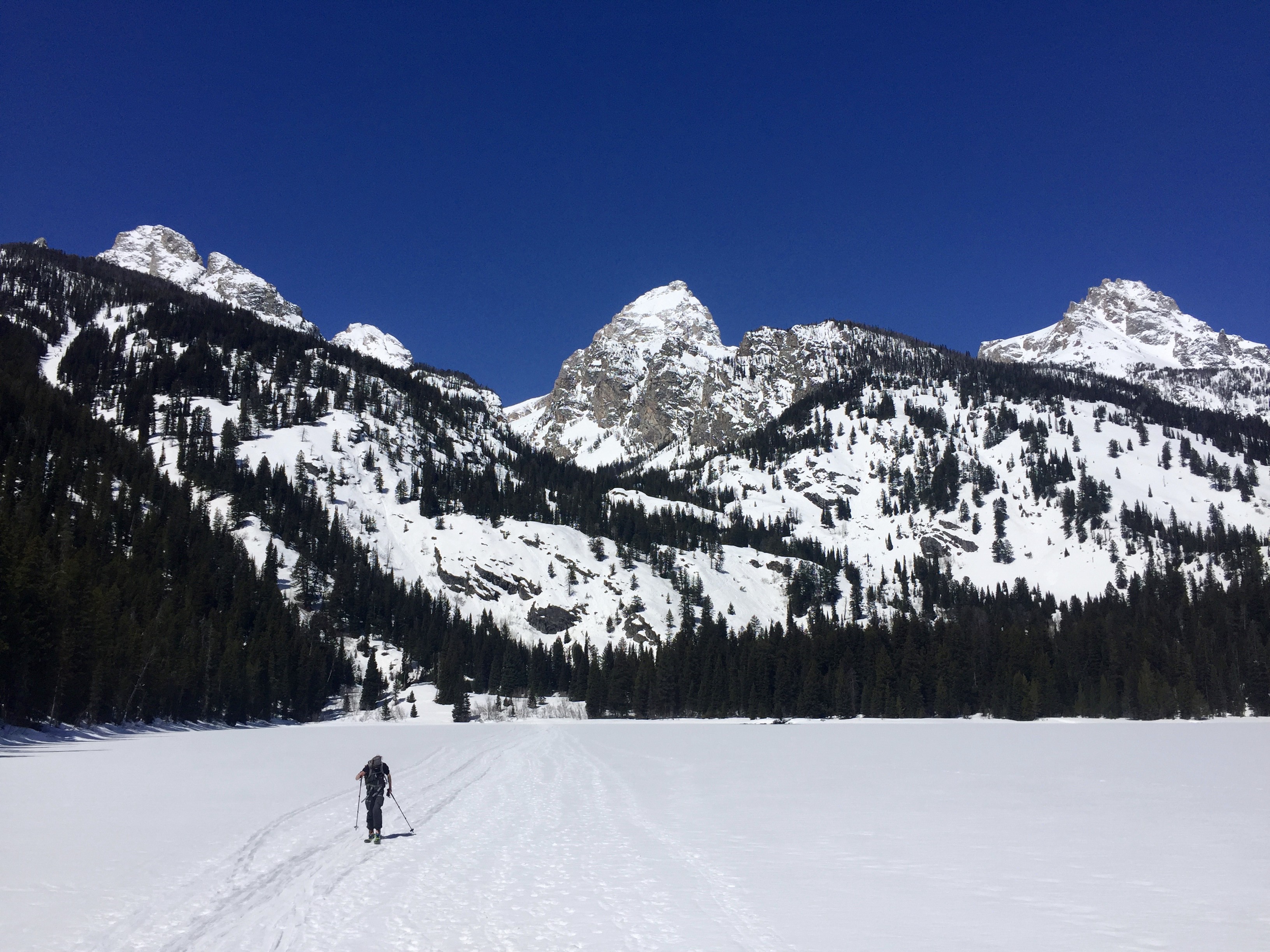 This will be my third full year in the Tetons, and after a generous winter brought over 500 inches of snow, sunny skies have me itching for bigger objectives. The Middle Teton, at 12,805 feet, is the third tallest peak in the Teton Range. From my home in Victor, Idaho, the Grand, Middle and South Tetons have teased me the last four years. I got out for a few mid-winter missions in Grand Teton National Park, putting ski turns on Disappointment Peak, Shadow Peak, Albright Peak and 25 Short, but nothing overly notable. Facing a narrow weather window after a nasty Mid-April storm cycle, it was time to finally crack the 12,000 foot barrier. I climbed the Middle three summers ago, so I sided with familiarity. I headed to the Taggart Lake parking area the day before, just in time for sunset. I talked with several other skiers car-camping that evening, but none had ventured into the high alpine. The forecast bode clear skies and valley temperatures of nearly sixty degrees, and the Middle is set deviously far back in the range, so an early start was imperative. I set my alarm for 3AM and curled into the trunk of my new Hyundai Elantra, anxiously anticipating the day to come.