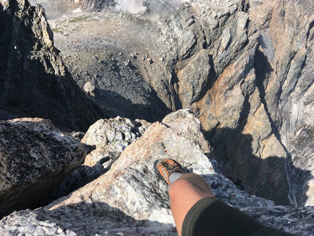 The summit was absolutely stunning. Hardly big enough for one, the 12,326 foot perch provides phenomenal views of the Grand Teton and Mount Owen to the south, Mount Moran to the north, and the entire Greater Yellowstone ecosystem in every direction, as far as the eye can see. In a summer riddled by wildfires and smoke stricken skies, I was blessed to sit upon this alpine throne with only baby blue overhead. Dangers and rating qualms aside, Teewinot is a marvelous and rewarding adventure for the well prepared, but unfortunately, what goes up must go down – and the descent is yet another place Teewinot earns deadly stripes.