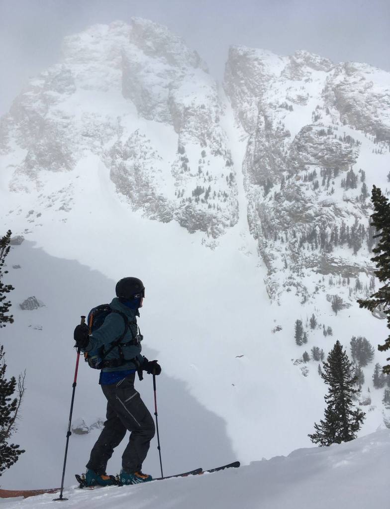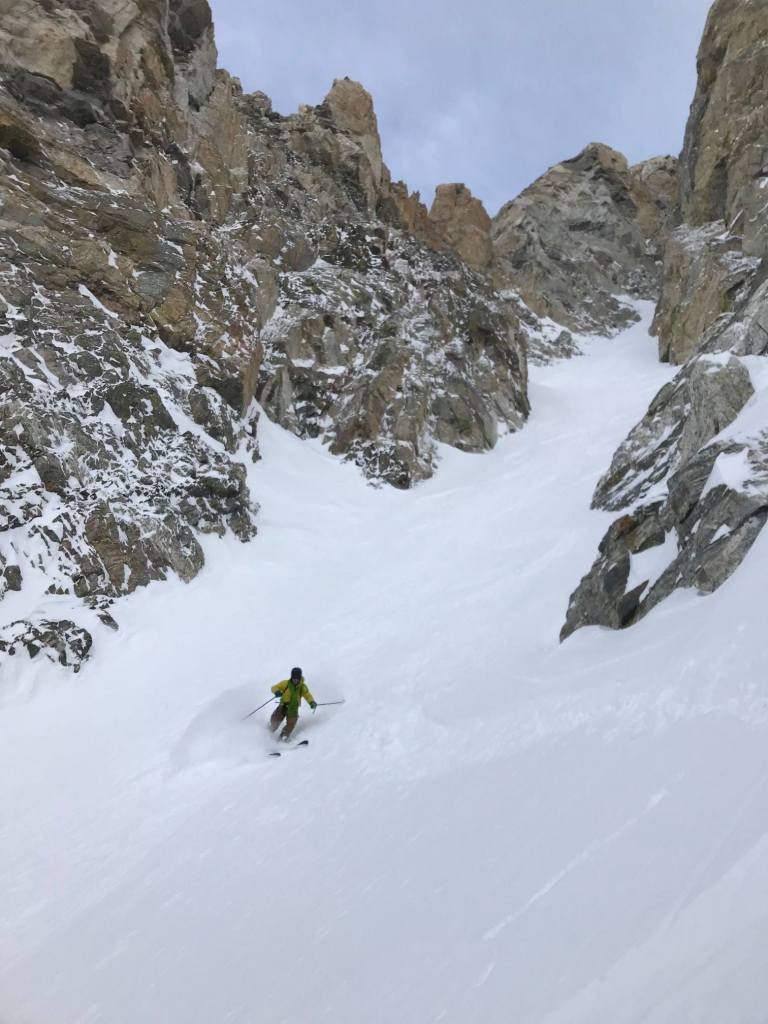 On a bitterly cold March 2019 morning, John Walker and I set off to attempt the “Nez Perce Trifecta” – skiing the Sliver, East Hourglass and West Hourglass Couloirs in a single push – a Teton ski mountaineering classic. We didn’t quite hit the mark. High winds, deep snow and sub-zero temperatures pushed us towards hot coffee at the two-thirds mark, but two thousand feet of knee deep (and stable) chute skiing ain’t too shabby in it’s own.