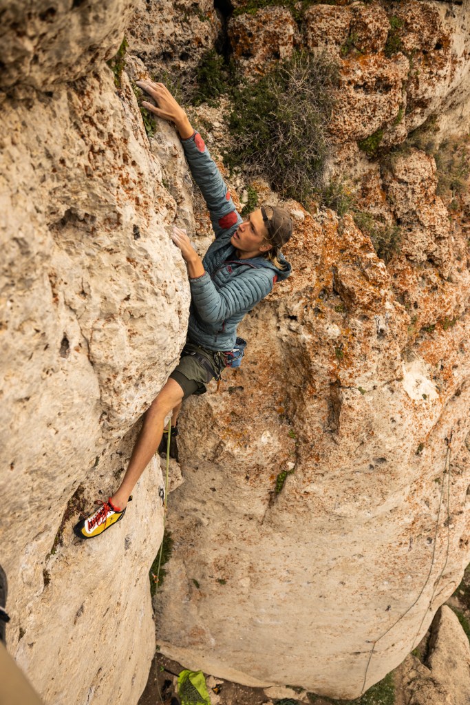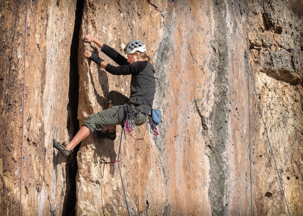 Unless you are one of the lucky few to live in a diverse climbing mecca like Lander, Wyoming or Bishop, California, where all realms of climbing and rock types are at your fingertips, it’s likely you’re limited to only one type of rock, practicing only one style of climbing that requires a particular range of movements and skills. I am lucky enough to live in the Tetons where the realms of alpine, trad, sport and bouldering are all available, as well as limestone, sandstone, basalt and most prevailingly, granite. However, even a home as sweet as mine has it’s limitations. The sport climbing here is sparse, especially for the lighter grades, and the bouldering is even more primitive. I learned to climb in the ruthless world of granite trad, plugging cams and slotting nuts out of necessity – for without my rack there was only a handful of routes below the 5.10 grade within 100 miles. While this tough upbringing did wonders for developing my head game, questing up multi-pitch old-school gear routes was far from an ideal way to develop strength and technique. Most of my time was spent relatively gripped and trying to survive the afternoon, sans style and grace. So when I found myself in Sinks Canyon for the first time, spending an entire weekend sport climbing on vertical limestone, I couldn’t believe just how weak I really was. I could hardly cut a carrot by the time the day was done!