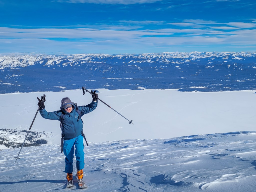 Leeks Peak reminds me of Table Mountain for it’s both generous and sinister way of just never, ever ending. Despite being only a hair above 10,000 feet, steep climbing segmented by long pitches of low angle snow make the summit push deceptively long. We never reached the true summit due to low snow and new 2022 voluntary big-horn sheep closures, calling our adventure at the severely windswept upper plateau, maybe 10,100 feet, just east of the USGS summit. Reed was eyeing a long and spicy north facing chute/couloir into Colter Canyon, but upon further investigation found the line wind hammered to bulletproof styrofoam and scree. Our choice was unanimous and obvious, retreat the way we came and enjoy 3,500 feet of miraculously pristine powder skiing along the way.