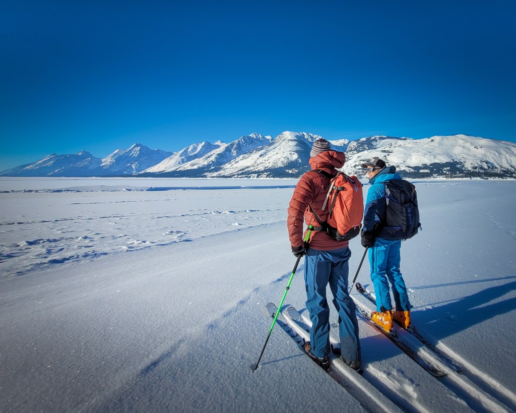 As expected, our descent to Jackson Lake was filled with nothing but stellar snow. The first 500 feet had a few sections of intermittent breakable crust, but by 9,500 feet the team was making GS turns through hero sugar, hooting and hollering to our hearts’ content. We snapped a few pictures but mostly chose to relish the day’s care-free energy. After a month of high-intensity missions fraught with peril and exhaustive decision making, I allowed my mind, soul and body to wander on Leeks Peak. Avalanches and route finding weren’t the faintest concern, and the snow was predictable as could be. On the steeper eastern knoll we all skied untracked lines on different ridges, parlaying in the drainage below. For an overnight party in need of a down day, this face from 8,200 feet to the lakeshore would provide an excellent lap-able objective on it’s own. Re-tracing our approach track we hit the car around hour eight, with a rough estimate of 14-16 round-trip miles .