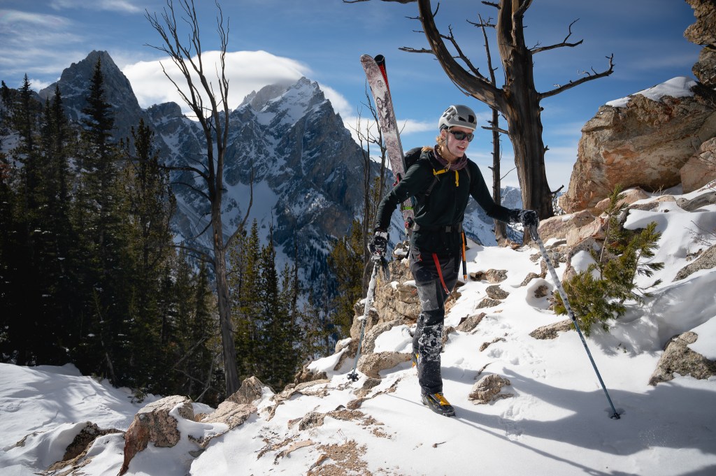 The view from the top of the Symmetry Couloir was striking. Symmetry Spire rose proudly to the north and the small summit of Storm Point stood just south. Cloud caps ripping over the Grand Teton spoke to cataclysmic alpine winds, affirming our choice to cower below 10,000 feet. The apron beneath the Teewinot-Owen cirque, home to the Tallboy and Diagonal Couloirs, was quite literally scrubbed to scree. Despite our line sitting in prime time condition, the Teton snowpack is in truly dire straits. Pray for snow, pray for snow… pray for snow.