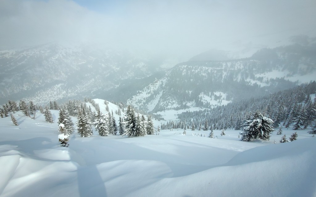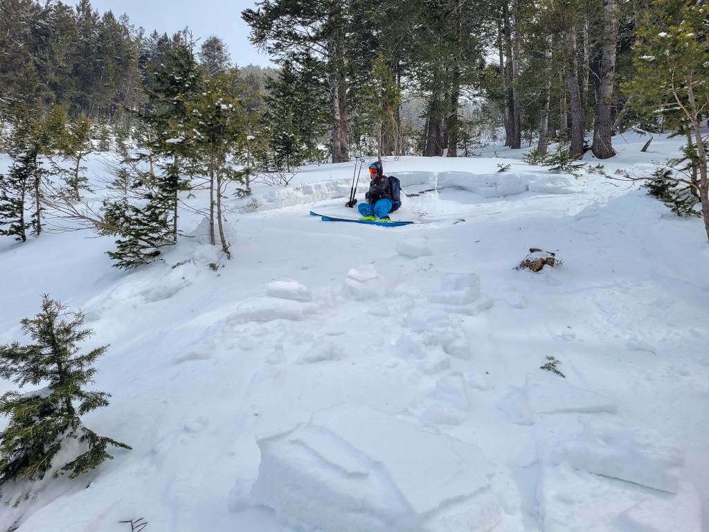 Treasure Mountain… Treasure Mountain… it’s sure had my number this year. Two of my three trips up the beast have produced avalanches. Luckily both were harmless. The Eddington Canyon and Hanging Valley areas are especially rocky and cliffy, more so than any zone I’ve come across in the Tetons. The avalanche I produced this day occurred between two rock bands on a twenty foot wide strip of snow. The initial impact zone that caused the collapse happened at an especially shallow point where the snow was only a few inches deep on a wind swept ridge. Wind-slabs are always most reactive in “unsupported” terrain, namely “rollover” zones and cliffs. I knew this well, but let my guard down in low-elevation, low-angle terrain. The avalanche forecast was reported “low” below 9,000 feet, but as the saying goes, “low danger does not mean no danger.” The worst possible outcome would have been a likely harmless tumble over a very small cliff, maybe a twisted knee or a concussion. But had there been more cliffs or trees below, the outcome could’ve been life threatening. Even Reed, with his multiple decades of Teton ski-mountaineering experience, said he wouldn’t have spotted the pocket. I guess events like these just come with the territory, and highlight the value of skiing with partners on days with questionable snow conditions. All in all, today was another great Teton day for the books. I’ll be looking forward to getting out of the bushiness and back up high as soon as the snowpack and my motivations allow.