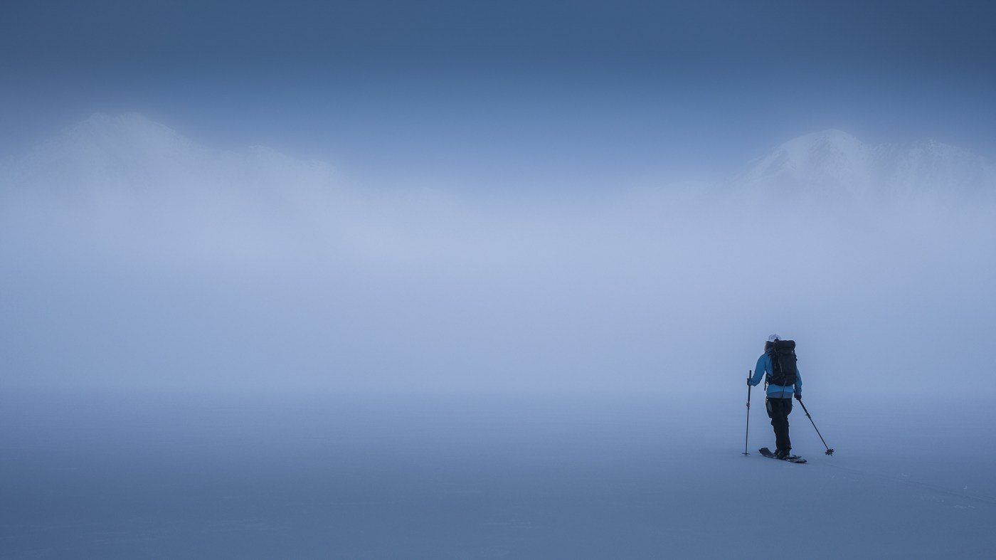 Getting to Waterfalls Canyon isn’t the hardest thing in the world, but isn’t trivial either. On a sunny day Waterfalls Canyon and the northeast face of Eagles Rest’s east summit are easily identified from Grand Teton National Park’s Colter Bay lot, directly across Jackson Lake. Can you see? Just skin right at the beast following the path of least resistance, about 3.5 miles. Stuck in a complete inversion induced white out like when Nick LaToof and I wandered onto the frozen shoreline of Jackson Lake on March 16th, 2022? Then I suggest using a GPS mapping device of some sort. Nick got us to the mouth of Waterfalls Canyon using Gaia GPS with minimal lost mileage. With a firm and frozen lake surface that allowed for efficient travel, we were very content and reached the canyon in well under two hours.