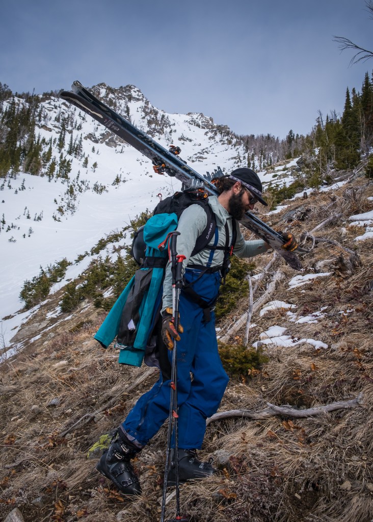 The “Banana Couloir” is more of a massive gully than a true couloir, providing 3,300 feet of moderate fall-line skiing on the most commanding east face of the southern Tetons. Beginning at roughly 11,000 feet, “the Banana” maintains an average slope angle above 30 degrees for over one whole skiable mile (take a second to digest that), quite possibly the longest continuous avalanche path in the Teton Range. On March 25th, 2022, John Modlish and I ticked the line in a mix of buffed powder and stellar corn, making for one of the more memorable spring descents of my half-decade Teton ski mountaineering career.
