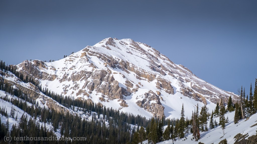To escape Open Canyon we traversed southeast to the next primary drainage and followed a well beaten out-track to the Moose-Wilson Road, lots of double poling, half-assed skating and waddling included. The forest between Open Canyon and the road is just barely sloped enough to rationalize keeping skins off, yet far too flat for anything other than mental, “when the heck is this going to end” torture. From the road, a half mile skin brought us to the car. Six and a half hours later, we had conquered the Banana.