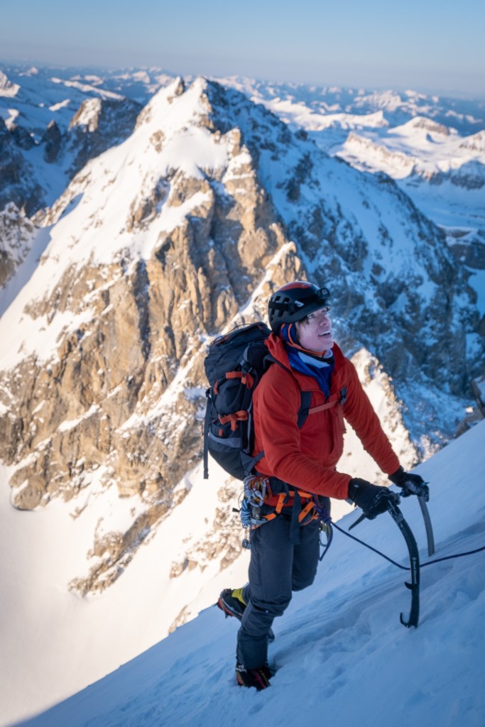 There is just something special about the Grand Teton. I think of it as my Everest. The king looms 7,000 feet above the valley floor, a monolith of North American alpinism and ski mountaineering, dwarfing the rest of the lauded Teton Range by 800 feet at the least. I have now climbed the Grand Teton seven times, three with skis, and my obsession with the peak hasn’t relinquished one bit. After skiing the Grand for my second time this past January, thoughts of a winter solo were born. I back pocketed the idea with no chatter, racking serious mileage on an array of ice and mixed climbs in the months to come, honing my skills and mindset for the unescapable moment of soloing a few stiff bulges of water ice with 2,000 feet of exposure in the Grand’s Chevy Couloir. Really, the whole 13,775 foot enchilada boiled down to this 300 foot strip of ice and snow, well known for ever-changing ice conditions and overhead hazard. I wouldn’t say the Chevy scared me – I was very confident, certain I wouldn’t fall – but if I was going to climb this thing rope-less I wanted to do it right, smoothly, in good style with no hiccups. Hiccups and raised heartbeats are for roped climbing, and soloing, at least for me, is about perfection.