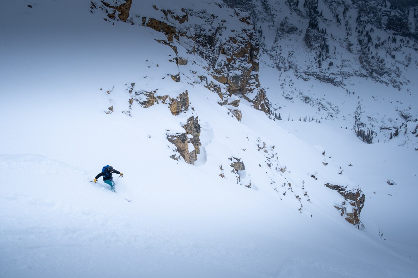 The last lesson for sweet Bobbi to learn on this fine April day is one of the cruelest realities of ski mountaineering, that amazing skiing (if there even is any) is usually only about 10% of the pie. Enter stage left – the Avalanche Canyon out-track in heavy, sticky, rain smattered snow. At least we scored 1,500 feet of mostly great powder in the north fork, because the canyon bottom was on its’ worst behavior. Isothermal boulder fields, a few edge-tuning rocks, abundant sidestepping, even more abundant ski base globbing, a three-quarters-melted Taggart Lake, two grouchy tourists and some tediously slow flat-land skating… if you’ve been there, you know. Once again, hats off to Wonder Woman for keeping a cool head. Six-some hours later we were popping LaCroix’s on the trusty Hyundai hatchback, eating homemade almond butter cookies and celebrating a first couloir well shredded. Adventuring with this lady and watching her conquer her goals makes me very happy. More snow next week? Alright… alright – I guess I’ll lean into this “Feburary in April” sorta deal.