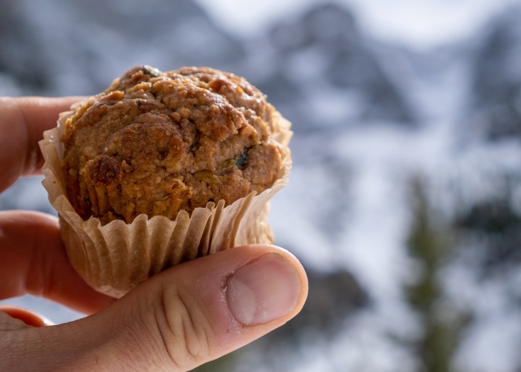 After 1000 feet the upper Tallboy merges into the massive glaciated belly underpinning the entire cirque, where we started in slough chasing deep powder, finished in surprisingly great corn and skied just about every condition possible in-between. Flat light, bulletproof crust, wind buff, damp pow and frozen debris were the exception, but all reared their ugly heads. Having skied in this zone three times now, I finally seem to have the exit dialed. As you can see from the photo below, the adventure never fully ends until the banks of Cascade Creek. Then at said creek, assuming you just skied the Tallboy Couloir in all-time conditions, you break out the homemade zucchini-coconut muffins, fill your water bottle with crystal clear alpine creek water and plunk your butt in a snowbank for a few minutes of reverence.
