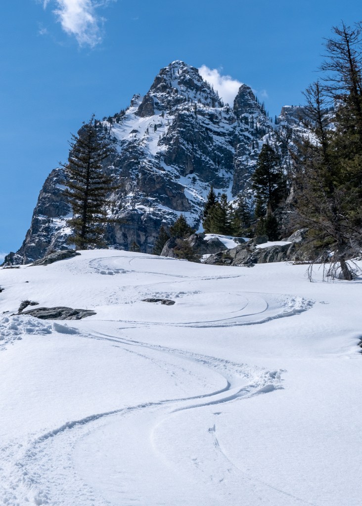The egress out Cascade Canyon, as always, was a pinch slow – though the rain crust hadn’t tipped isothermal quite yet. I actually skied some surprisingly stellar corn off Inspiration Point, and enjoyed bluebird views of Storm Point, Symmetry Spire and Mount Saint John while doing so. We were lucky enough to skate across Jenny Lake, though I fear this could be my last lake crossing of winter 2022. Hollow echoes and the occasional open watering hole spells trouble after a few more days of warm weather. We hit the car at 5:00PM – 10.5 hours round-trip – some fourteen snow miles, and seven bike miles – not too shabby. I must say, I’m a sucker for these multi-sport spring days.