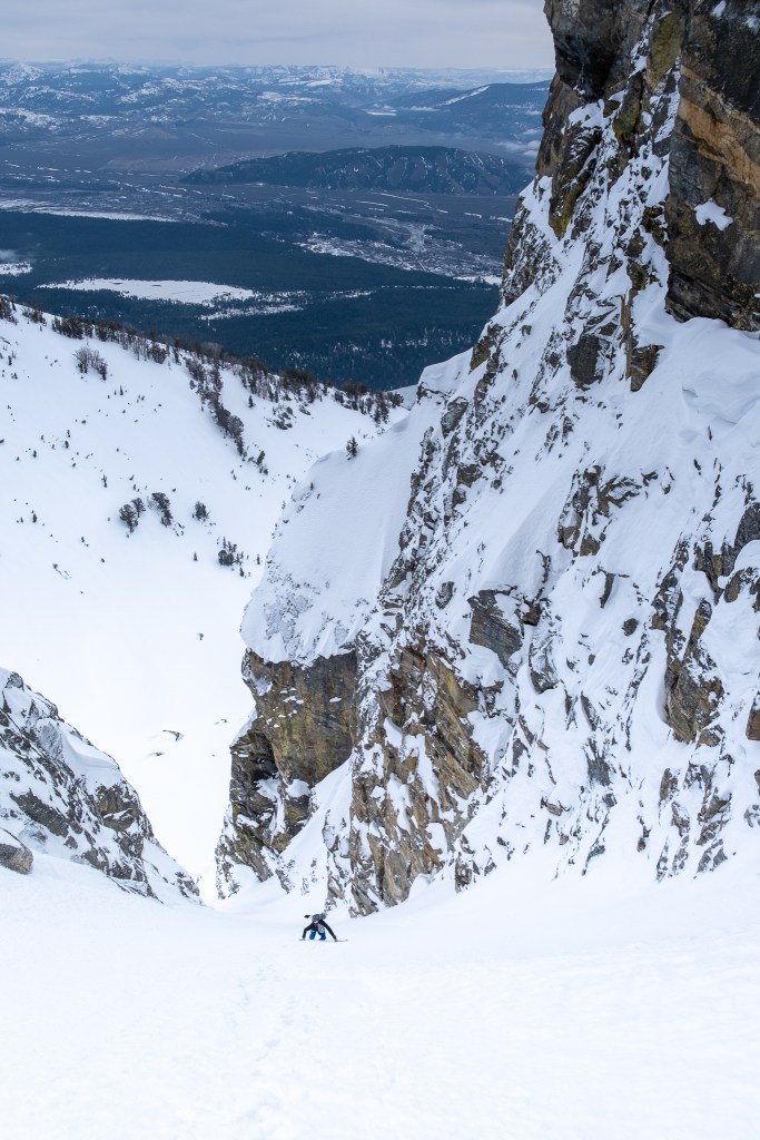 We started our day at 5:30 AM from the southernmost Grand Teton National Park boundary just outside Teton Village. The road to the Granite Canyon trailhead was closed for god knows what reason, but lucky for us we had forethought to bring bicycles. In the past few weeks I have enjoyed many bike-ski-bike days, to the degree that casting off in pitch blackness with headlamps, skis on my back and the sound of whistling tires was beginning to feel normal. Today we chose to pedal further than the traditional horse trail approach for the Banana Couloir, continuing at least another mile to the fringe of Phelps Lake before switching to skins at one of the many unofficial trails south of the watershore. I’d like to say our approach was calculated, but truthfully we just shot from the hip. To deploy presumptuous line of sight tactics in the Tetons is a reliable recipe for a disastrously inefficient bushwhack, yet today we escaped largely unscathed, eloping over matrices of drainages and vaguely following GPS confirmed summer trails to Open Canyon and the base of Prospectors Mountain. Was it the most efficient way? Likely not, but it worked.