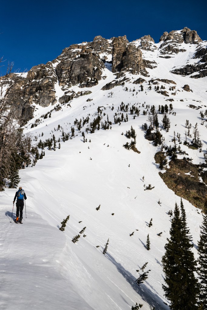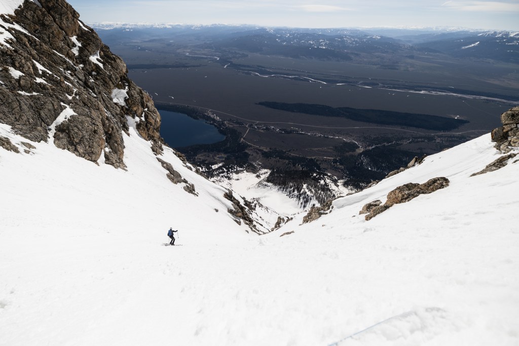 This Teton has spring has been abnormal to say the least. The range hasn’t had a proper corn cycle, instead replaced with an unusually wet April that ushered powder filled couloirs reminiscent of December. Then the weather shifted past melt-freeze conditions to hyper warm, causing massive amounts of shedding on the premier ski mountaineering lines. Since Connor James and I skied the V Couloir on Prospectors Mountain two weeks ago (in blower powder I may add), I’ve been enjoying 70 degree valley temperatures and an abundance of rock climbing from Utah to Idaho, all while the snowpack slowly rots away. Deeply satisfied with this year’s effort, I am ready to release my grasp on skiing big lines. However, when a quick one-day window for potential corn materialized with hard-freeze conditions forecasted above 10,500 feet, I was quick to rally the troops (better yet, trooper) for a late season strike mission on a line I’ve wanted to bag in proper style ever since Sam Johnson and I made our first descent in a heinous mid-winter storm, the East Face of 12,330 foot Teewinot Mountain.
