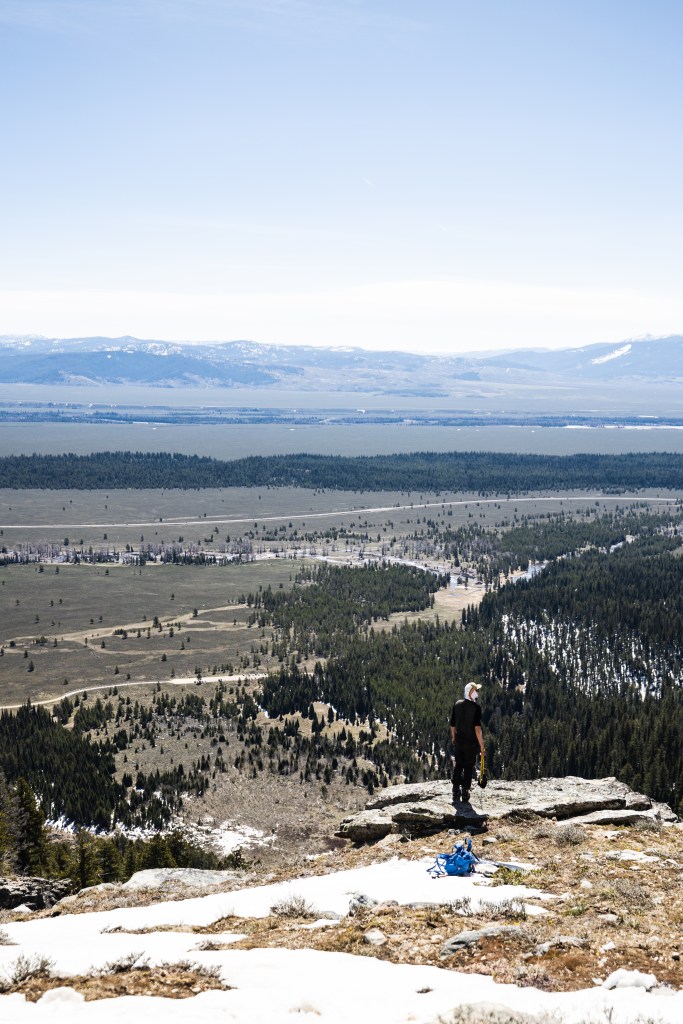 I was surprised to see the Northeast Snowfields on Mount Owen still looking well intact, as well as the southwesterly lines on Mount Thor and Moran. As his first Teewinot summit, Connor’s stoke was infectious. I always appreciate his grateful and motivated attitude in the mountains, and willingness to push hard when time is of the essence. Being two photographers we took turns snapping shots before scrambling back to our skis and gearing up for a hasty yet promising descent.