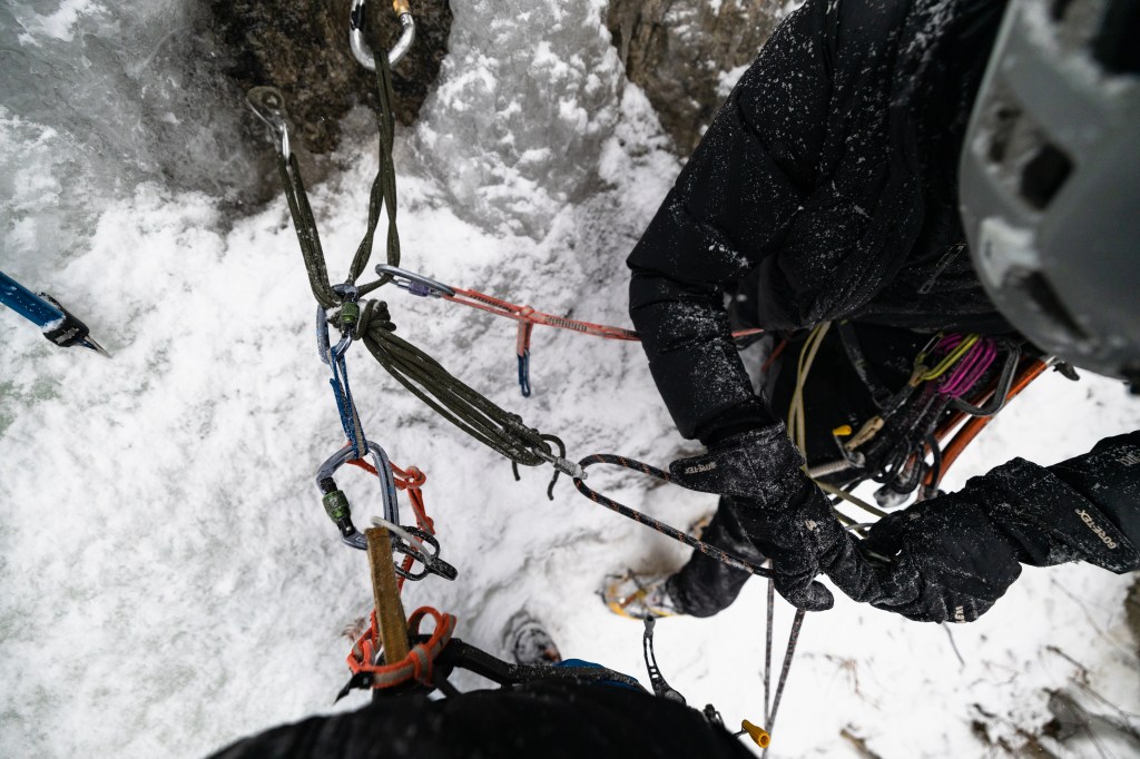 Sifting through half written blog drafts from this past winter, I decided to finish up this short trip report for the sake of completeness – and to share some of my favorite pictures. Though far from a destination route, Boy Scout Falls provides an excellent moderate multi-pitch ice experience with easy access from the “Idaho side”. The flow can form as easy as WI3- or as stout as WI4 (the reported grade on Mountain Project), and can be climbed more than a few different ways.