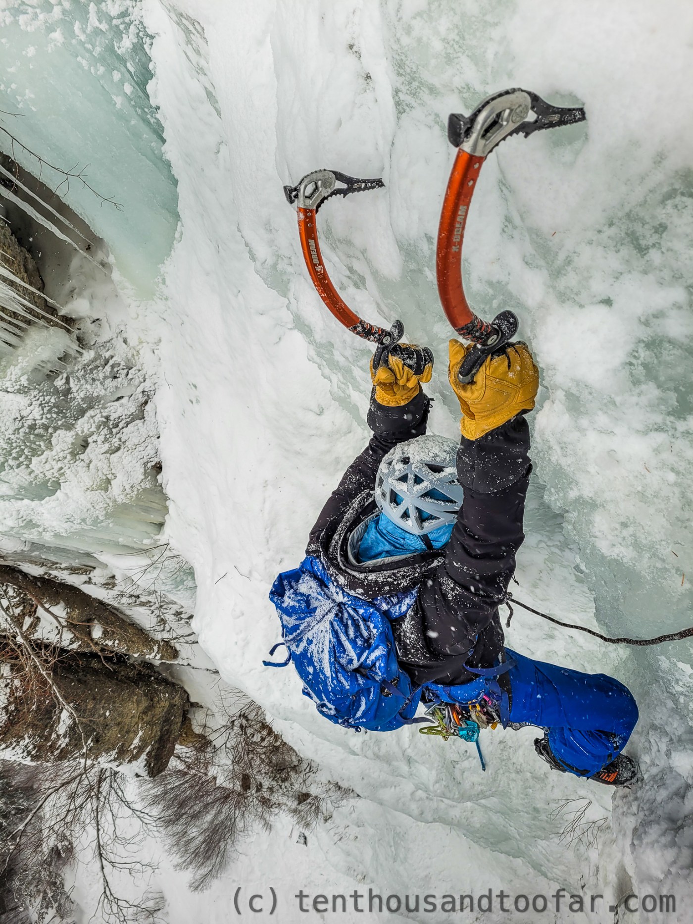 Gripes about shrubby isothermal forests aside, Boy Scout Falls is equivalent to a three star climb in Hyalite Canyon. World class? Nope. Worthy of an early season tune-up or late season refresher? Absolutely. Given the arduous approach I will likely never return with a half-day constraint. Instead I’ll spend an entire day leading and top-roping the many variations on this surprisingly diverse flow. Underground legend holds that several traditional mixed lines with bolted anchors ascend the cliffs adjacent to Boy Scout, but with M6 as the barrier to entry I might need another whole season or three on the picks before maximizing this area.