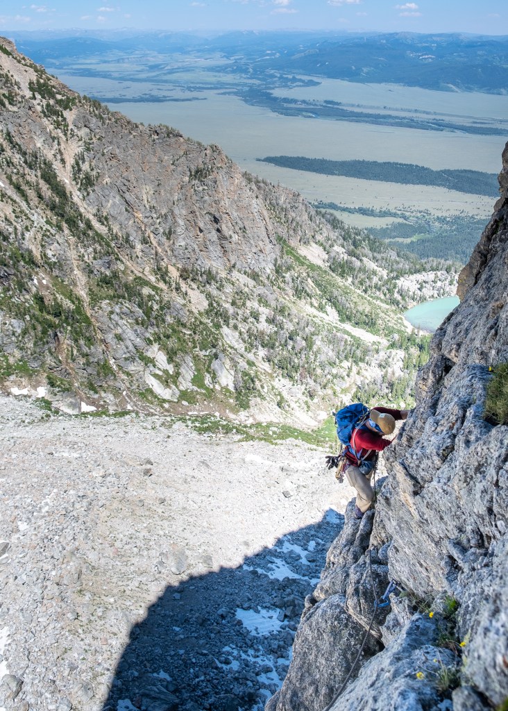I sauntered down to the van by 10:00PM while Connor jogged ahead to salvage his evening plans. Six hours behind schedule? Sounds about right for an old-school Teton 5.9 shoot-out. Beyond the incredibly varied, sustained and steep climbing accentuated by world class views, the true gem of our mission was imagining Yvon Chouinard and Tom Frost journeying up the rugged, unclimbed north face of Disappointment Peak with little more than a rack of pitons, chocks, maybe some early hexcentrics and a heart full of courage. To picture two climbers ascending those chimneys and steep cracks in leather boots, circa 1963, likely without harnesses, borders unfathomable. The paradigm warping vision and inner fire these pioneers of American alpine climbing displayed, especially on the epic westward traverse of pitch three, redefines admirable. Even in 2022, the golden age of over-saturated rock climbs, the Chouinard-Frost provides a wild and unadulterated alpine experience to the open-minded climber tailored towards type two fun, a little bit of pucker and a willingness to forgive the mid-crack grass clump, slimy chimney or moaning flake. After all, Grand Teton National Park ain’t no City of Rocks, and any 5.9 put up by Yvon Chouinard is sure to be a little stiff.