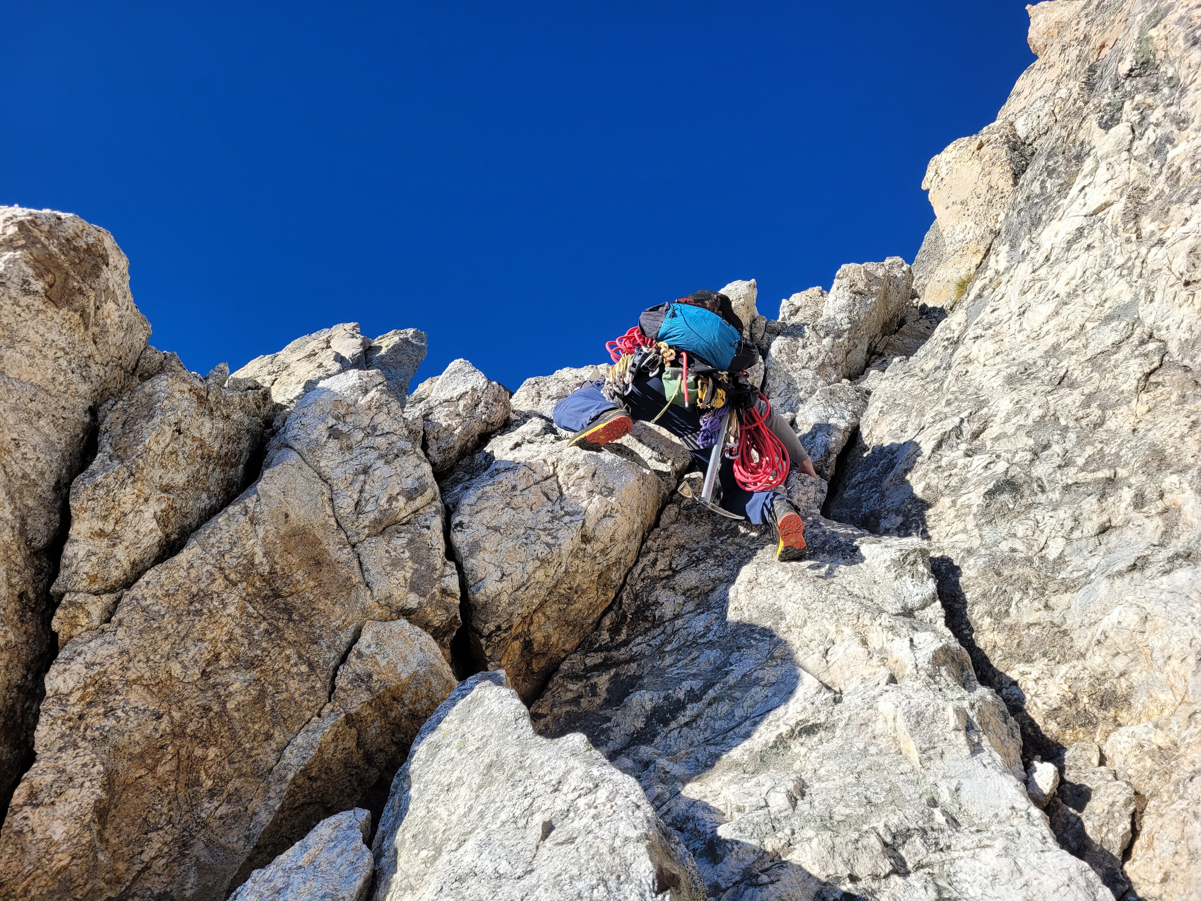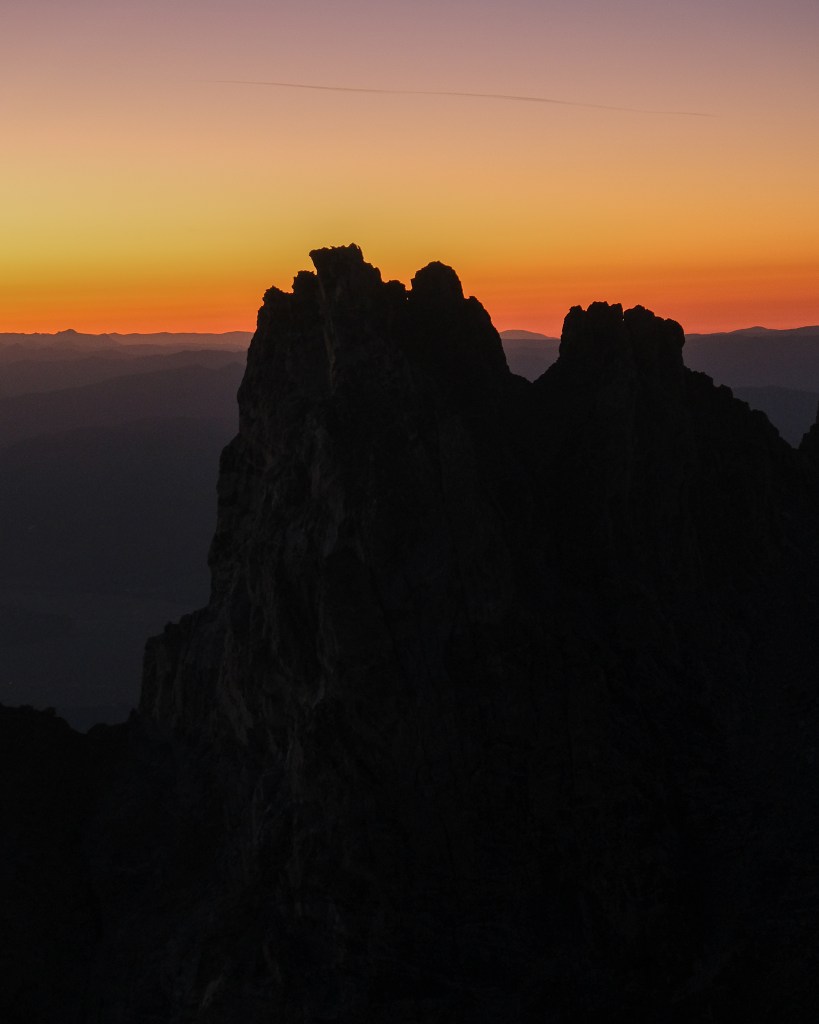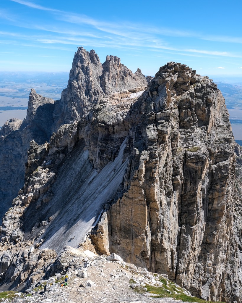 Perhaps Aaron Gams was right when he said something along the lines of “this route is best for parties with at least some prior knowledge of the area.” For a party completely new to Cascade Canyon and the Owen-Teewinot Cirque, let alone the Tetons, this route could easily be considered grade V – part of me is surprised it isn’t anyways. The North Ridge really is more of a big-mountain climb than a “rock climb”, and should be approached as such. Had we not gotten snuffed by high winds on day one, two days would have been a comfortable car-to-car pace. For the life of me I cannot imagine this route as a one day endeavor, short of extensive soloing and super dialed approach beta. Questionable rock quality cleans up steadily with altitude, and the best pitches are located above the “open book” gully, on the Great Yellow Tower and Koven Route. Though no pitches are particularly outstanding, the route earns its’ classic destination in remoteness, aesthetics and the sheer multitude of climbing styles and skillsets needed to succeed. This will be a climb I remember forever, and potentially one I consider repeating, perhaps the upper half in conjunction with the Run Don’t Walk Couloir come late spring.