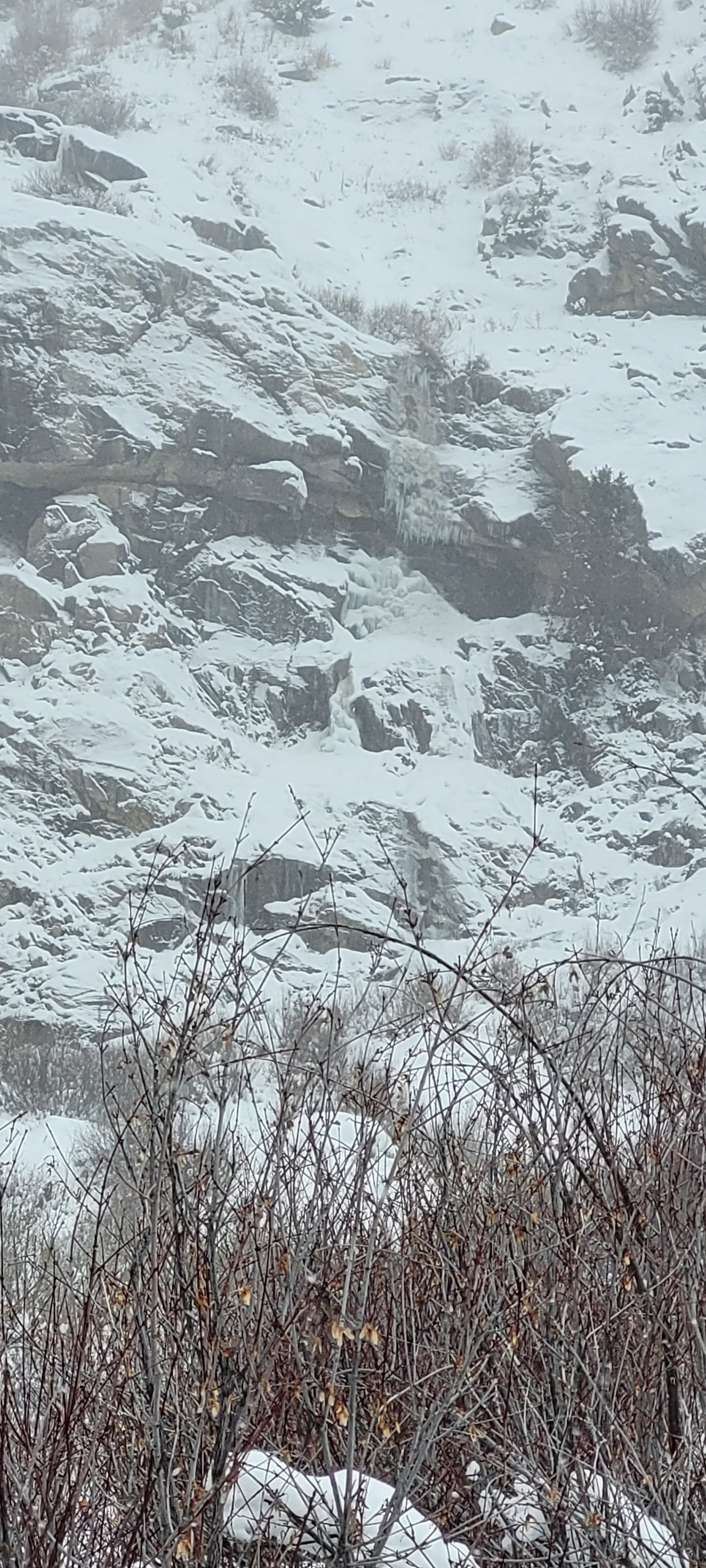 On November 10th, 2022, Connor James and I packed a smorgasbord of gear for both ice and mixed climbing, with the intention of an early season strike on Prospector Falls. At the hands of a botched weather report, which forecasted partly sunny skies, cold temps and mild wind, we were dealt blizzard conditions. With a laser show of spindrift rocketing down the north and south walls of Death Canyon alike, we succeeded in little more than an arduous scouting mission. Sadly, the only photo we could take was of the Albright South Gully (737 Earful?) route, as horizontal blowing snow only allowed for brief snippets of the upper canyon flows. Banter aside, the report follows.