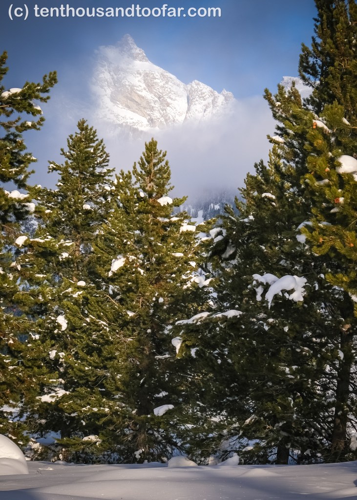 Sitting here in Los Angeles staring over the Pacific Ocean, I have really enjoyed the peaceful mornings and bottomless coffee to edit landscape photos. I find landscapes cry for more time and detail than action shots, where depth, foreground, framing and tasteful cropping play a large role in the final product. Alas was born this “trip report” – really an excuse to share the landscape photos I took while skiing in Grand Teton National Park last Friday, since the line I skied is well documented on the World Wide Web, and hardly special. Hopefully park regulars might find use in recent photos of the Sliver Couloir and Shadow Peak as well.