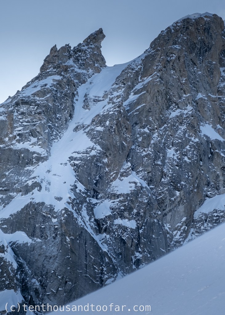 Ski mountaineering, rock climbing, ice climbing and all other forms of mountain recreation are inherently dangerous. Should you decide to attempt anything you read about in this article, you are doing so at your own risk! This article is written to the best possible level of accuracy and detail, but I am only human – information could be presented wrong. Furthermore, conditions in the mountains are subject to change at any time. Ten Thousand Too Far and Brandon Wanthal are not liable for any actions or repercussions acted upon or suffered from the result of this article’s reading