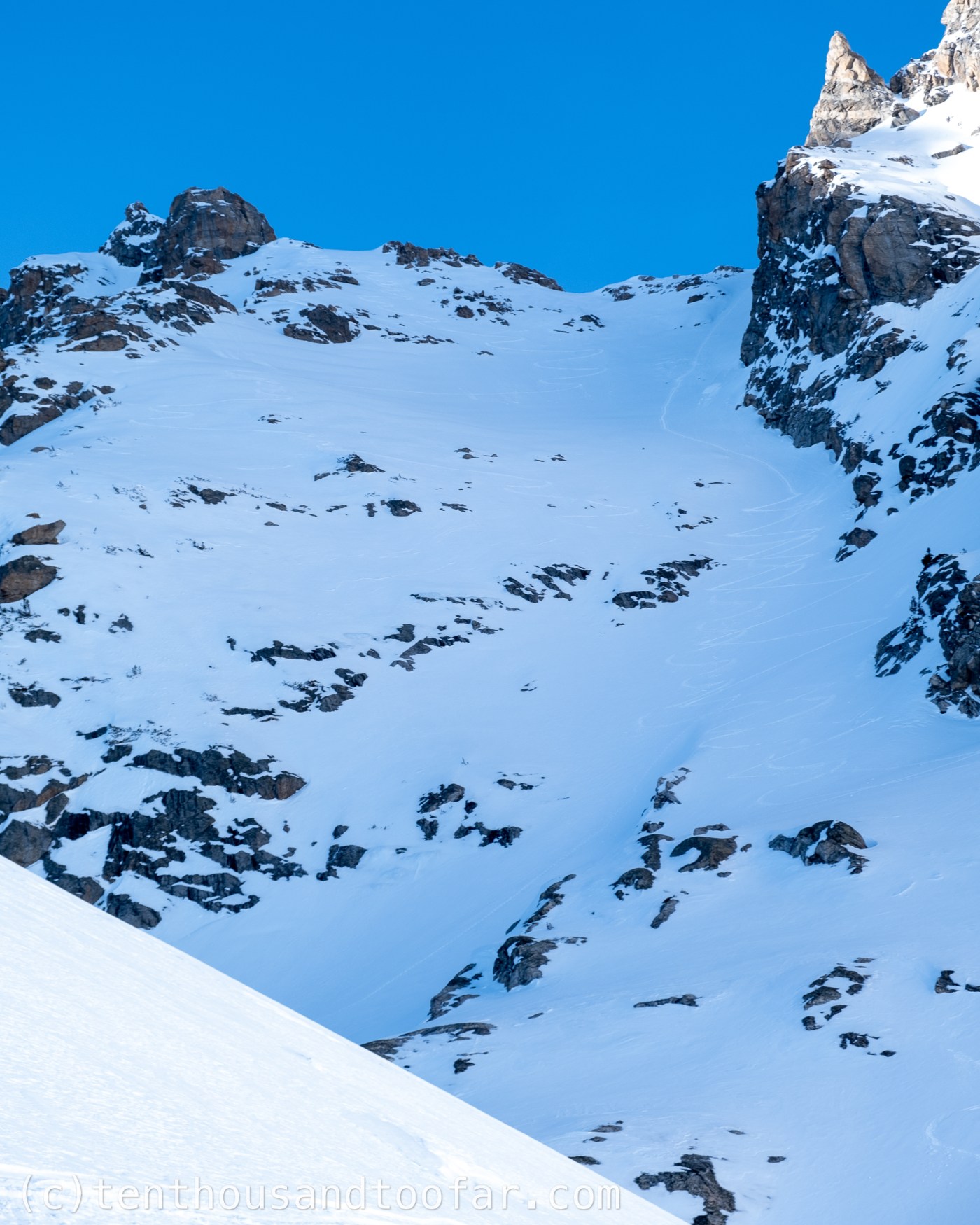 Ski mountaineering, rock climbing, ice climbing and all other forms of mountain recreation are inherently dangerous. Should you decide to attempt anything you read about in this article, you are doing so at your own risk! This article is written to the best possible level of accuracy and detail, but I am only human – information could be presented wrong. Furthermore, conditions in the mountains are subject to change at any time. Ten Thousand Too Far and Brandon Wanthal are not liable for any actions or repercussions acted upon or suffered from the result of this article’s reading