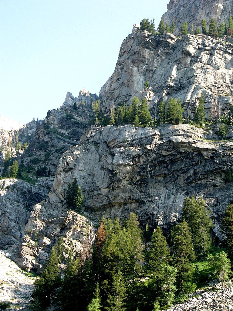 The south buttresses of Cascade Canyon host some seriously impressive rock formations, home to the ever popular Guide’s Wall and a fair number of semi-trafficked moderates. While still waiting for the true alpine to dry Bobbi and I planned to check out Vieux Guide, a four pitch alternative to Guide’s – a mellow day focused on improving alpine efficiency and enjoying some time in the early summer sun. Instead, after heavy rain and snowmelt left the crux pitch of Vieux visibly streaked with water, we pivoted and aimed for the lesser-known Trinity Buttress (a.k.a. Symmetry Crag 4). Trinity is located just west of Guide’s, and the crux pitch of the route we planned to try, “A Climb On Trinity Buttress”, seemed dry from the approach trail. We had actually attempted the route a week prior, bailing before pitch one for a multitude of factors, and were eager to give another whirl. The forecast was clear, the sun was shining and the line looked awfully proud.