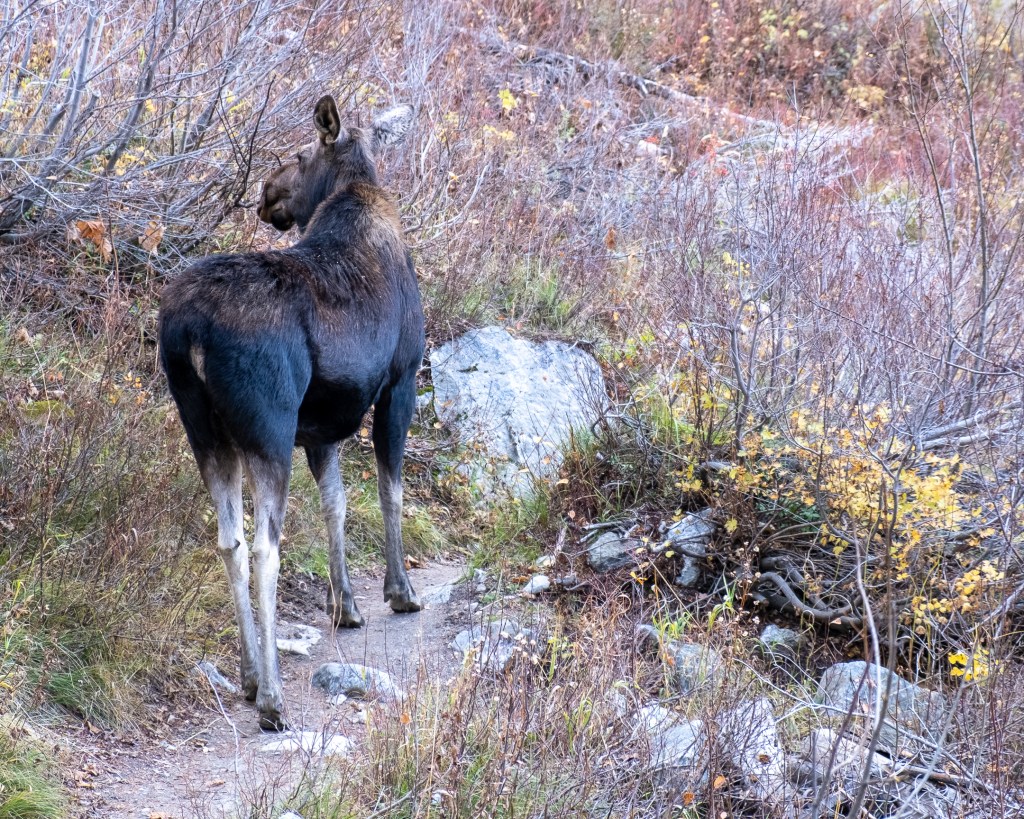 We pleasantly climbed the Durrance Ridge with a light rack of cams from finger size to 2.5 inches, a set of wires and a 60M rope. Long slings as always are quite handy in low angle alpine terrain. If planning on the notch rappel and not the Northwest Ledges down-climb, I wouldn’t bring shorter than a 60M rope (50M might work?). If uncomfortable soloing fourth and easy-fifth class terrain, reaching the summit will add an additional few pitches. Though only (and fairly) rated Grade II, this route could easily turn into an all day fiasco if pitched out and zipped up completely. It does, after all, involve some 1,000+ feet of rock! We comfortably climbed in `10 hours car-to-car at a casual but consistent pace, complete with snow, ice, ample soloing, simul-climbing, three rappels, one lost PB&J and two moose.