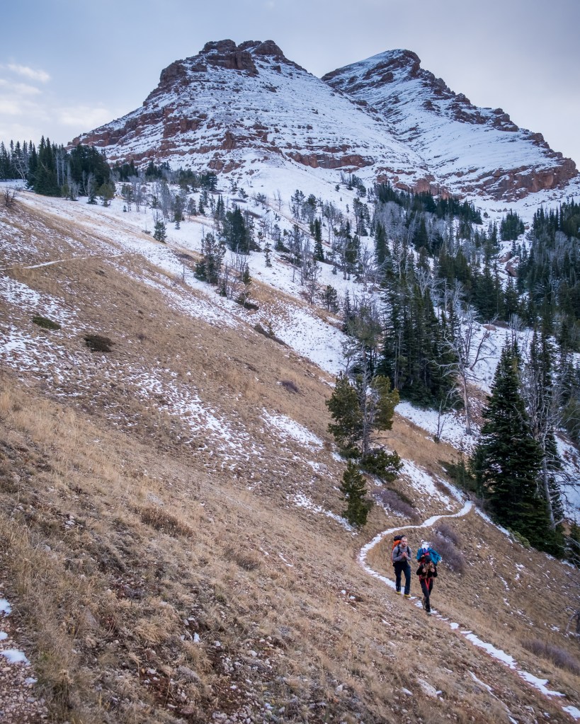 After a failed early ice mission in the Lost River Range two weeks ago, Scott Melin and I packed up the van once again, but instead pointed north. Sphinx Mountain is renowned for harboring perhaps the earliest forming ice in the region, on a dramatic, remote and inspiring north face hanging high above the Madison Range, Beaverhead National Forest and Lone Peak. Bobbi Clemmer and I actually scrambled the peak before we were climbers of any kind, four summers ago via the broad Northwest Face, so I had welcomed familiarity with area. Unlike the ruthless bushwhacks of the Lost Rivers, our approach would be made via a 4.5 mile maintained trail to the 9,000 foot saddle separating the Sphinx from The Helmet. Then the fun really begins, circumnavigating to the North Face across endless bands of conglomerate cliffs following nothing but intuition, to hopefully catch one of four classic, yet ephemeral and elusive, 600-1000 foot ice lines. Prepared for anything from thick water ice to thin choss wrangling, we packed a healthy rack of pins, peckers and nuts to supplement ten ice screws, with lofty ambitions set towards the “best on the face” yet rarely formed Earl-Trimble Route (WI4) or a backup of the classic Lowe Route, which purportedly forms every year from WI3-5 at fattest, and M5 at leanest. Another unlikely but exceptionally full value diversion is the Lowe Direct, which adds a few more pitches of ice beneath the already classic Lowe, and if formed would be hard to resist. I guess one could say we simply planned to “peek around the corner”, and after the wettest fall in the Greater Yellowstone Ecosystem I can remember, hopefully strike gold.