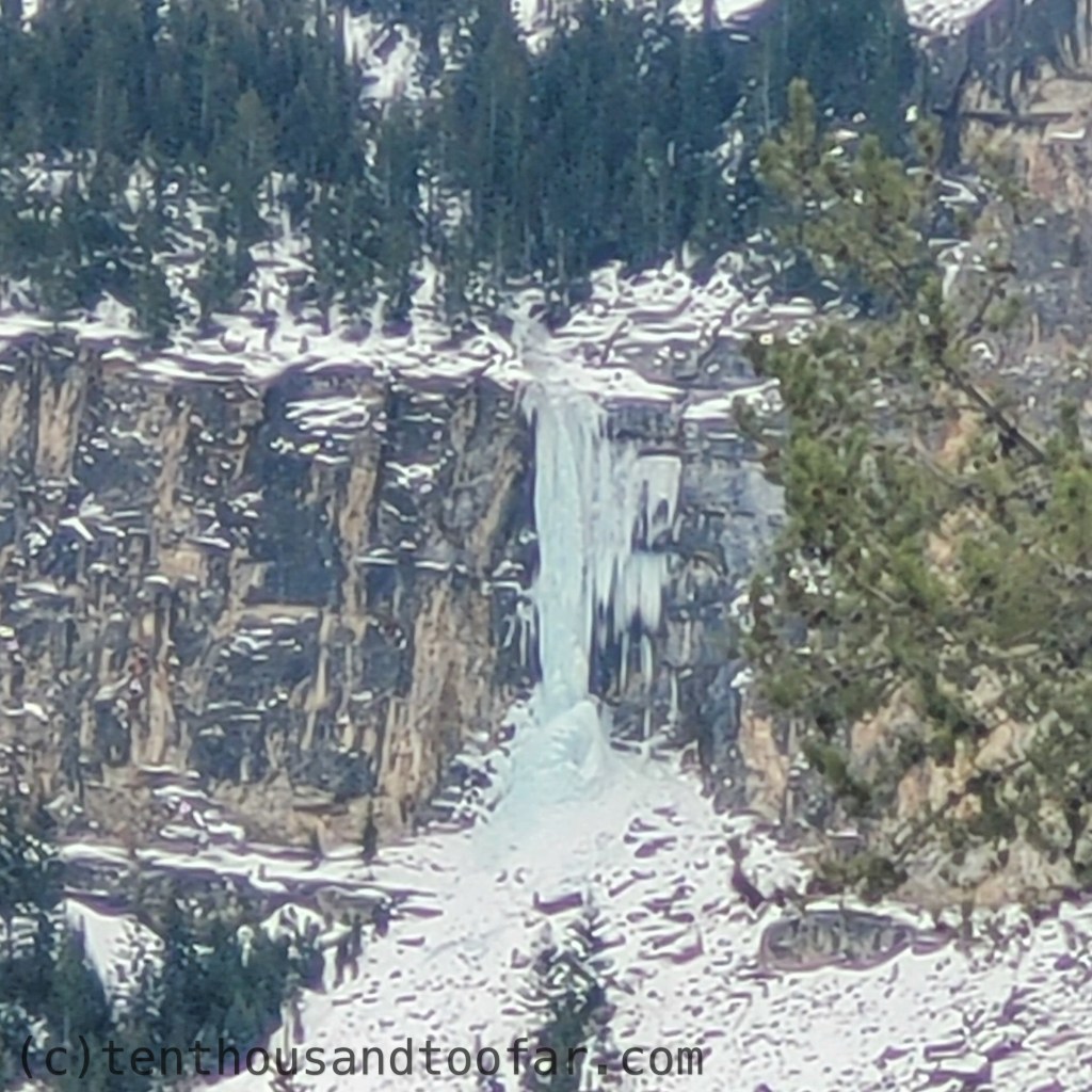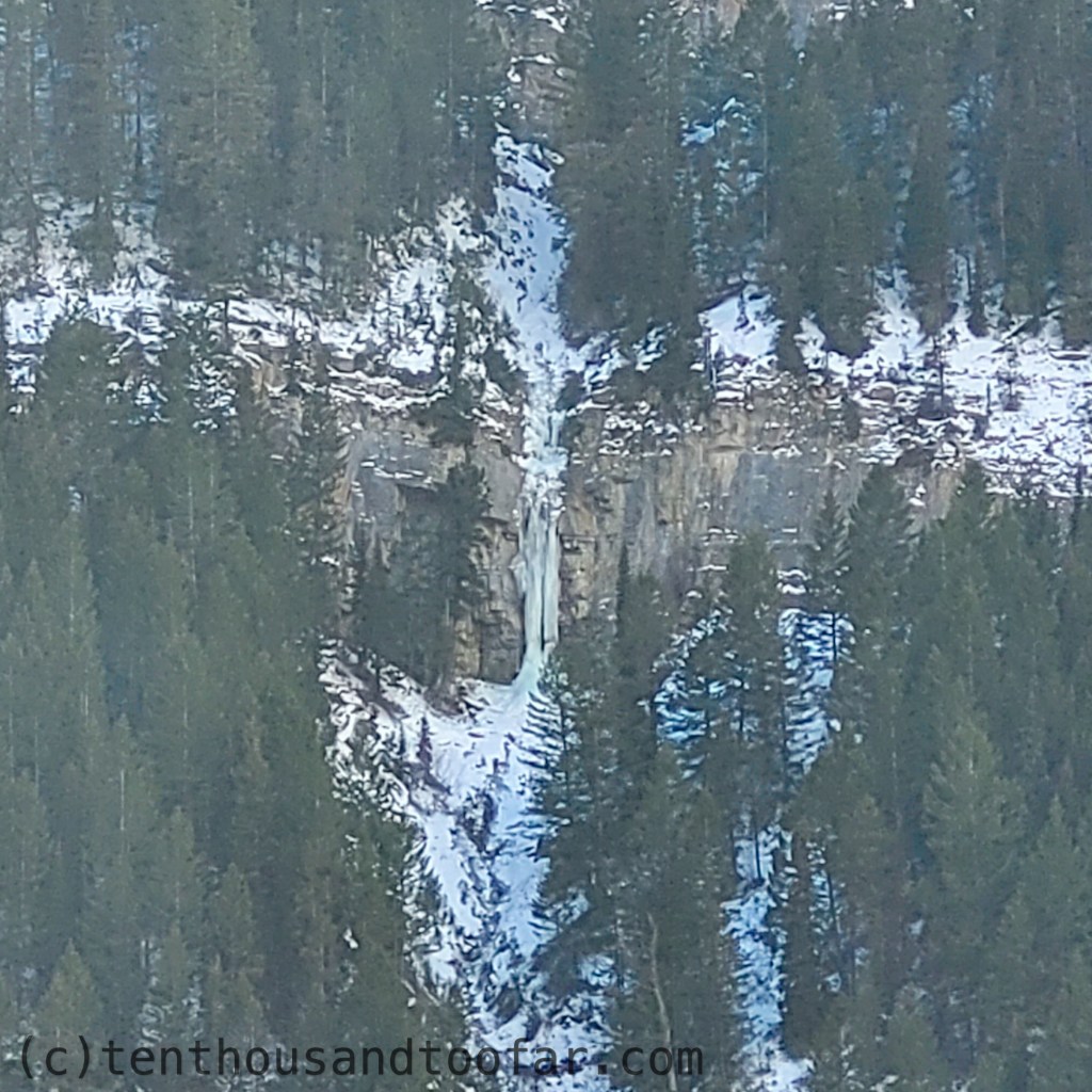 Today my partner and I biked into Teton Canyon in search of ice. We hiked to all the south facing climbs but didn’t find anything in climbable shape. The Landslide Pillar (Waterfall Wall Area) was the most promising yet was actively pouring with water – much worse than it appears from the trail. The road was mostly packed snow after the first mile of dirt, but bicycles still seemed the most efficient mode of transportation. The sun was blazing and ambient temperatures reached the mid forties. Lots of water was pouring down the south facing climbs. All we need is a little shade and a cold snap. Here’s a breakdown by route with photos. Chao.