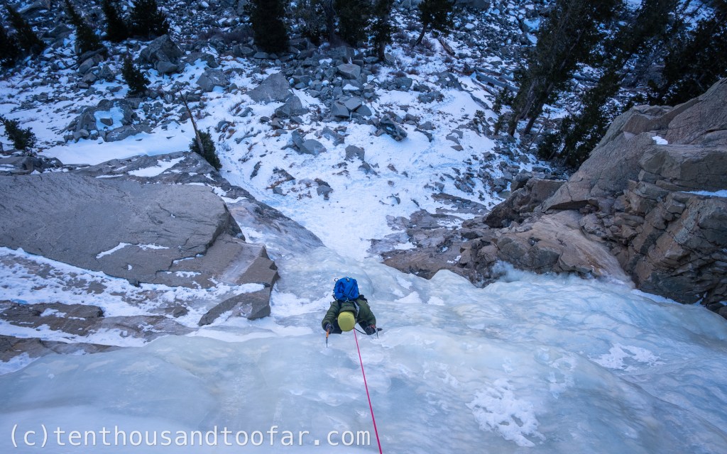 Since returning from Christmas break in California, and still waiting for snow, it’s been all about the ice. Here’s a little report from the mega-classic Golden Tears (WI4+, III) with Erik Boomer. It’s in great shape right now.