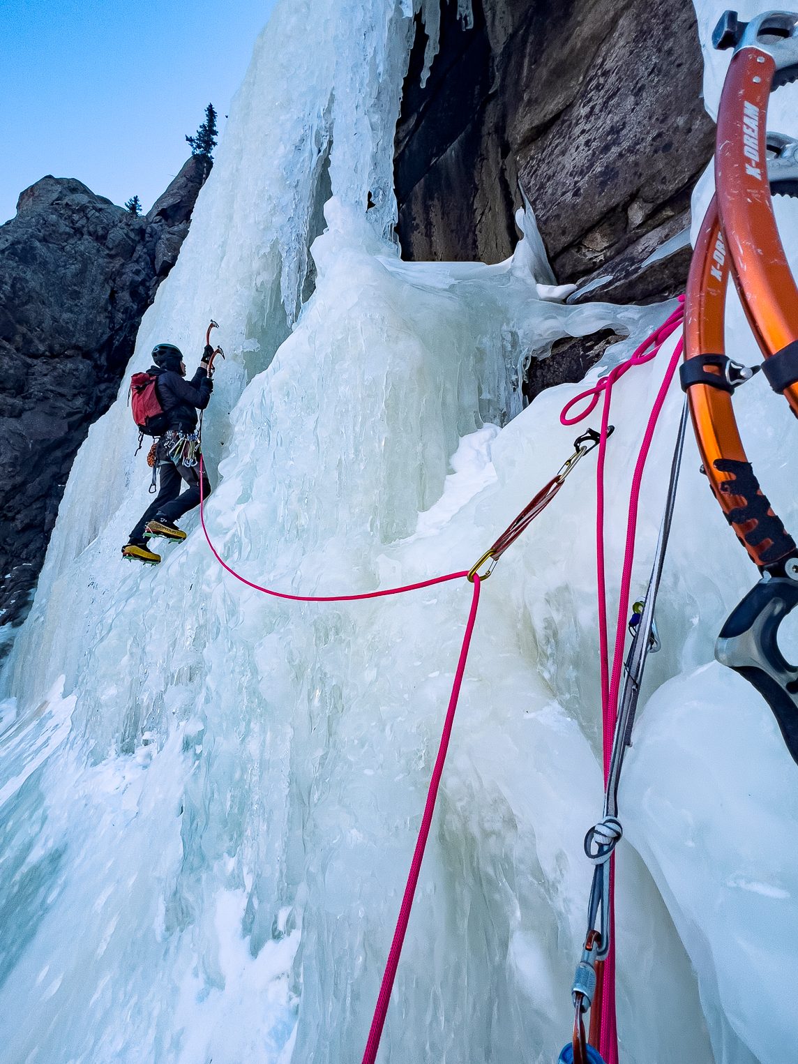 - The WI4+ grade felt soft when I climbed the left side of the route in 2023. However, the grade felt accurate for the center line this year.