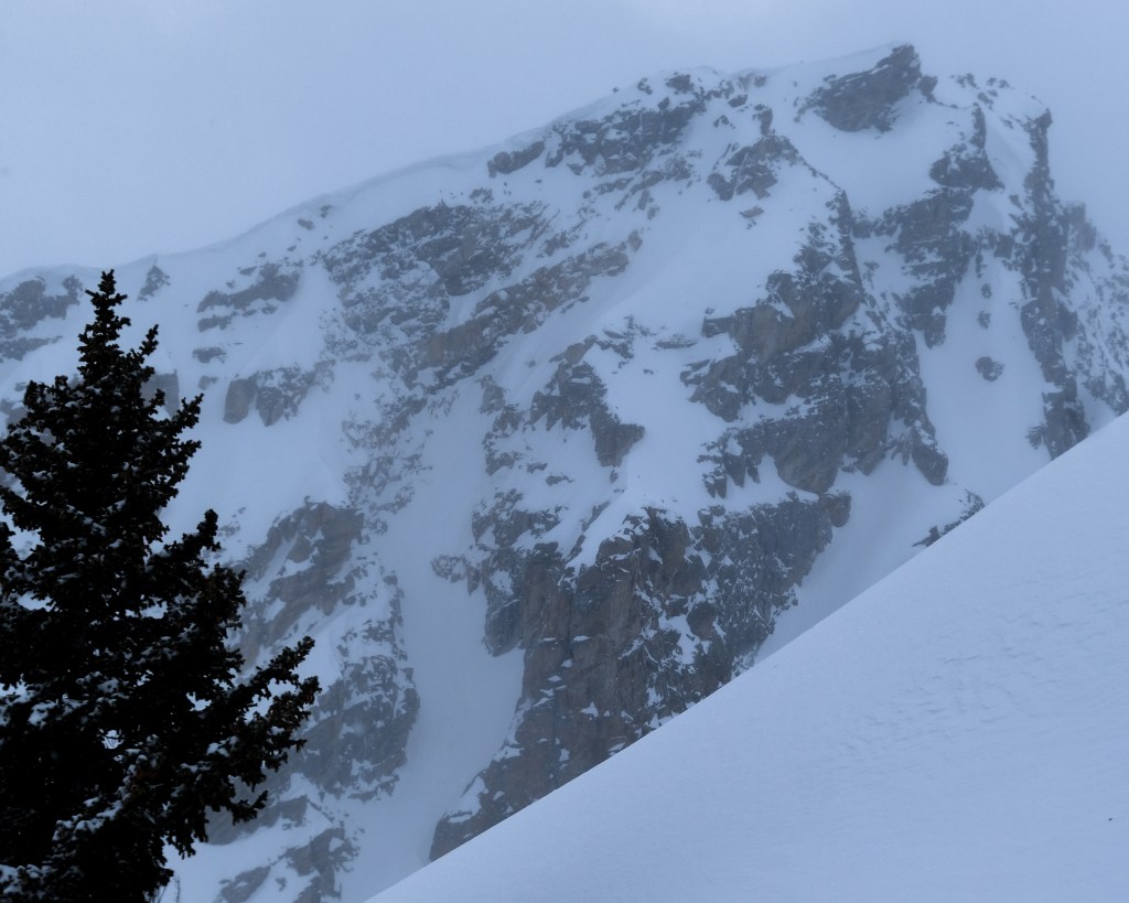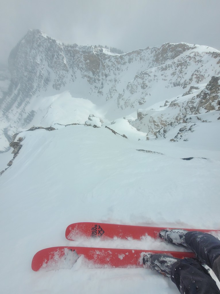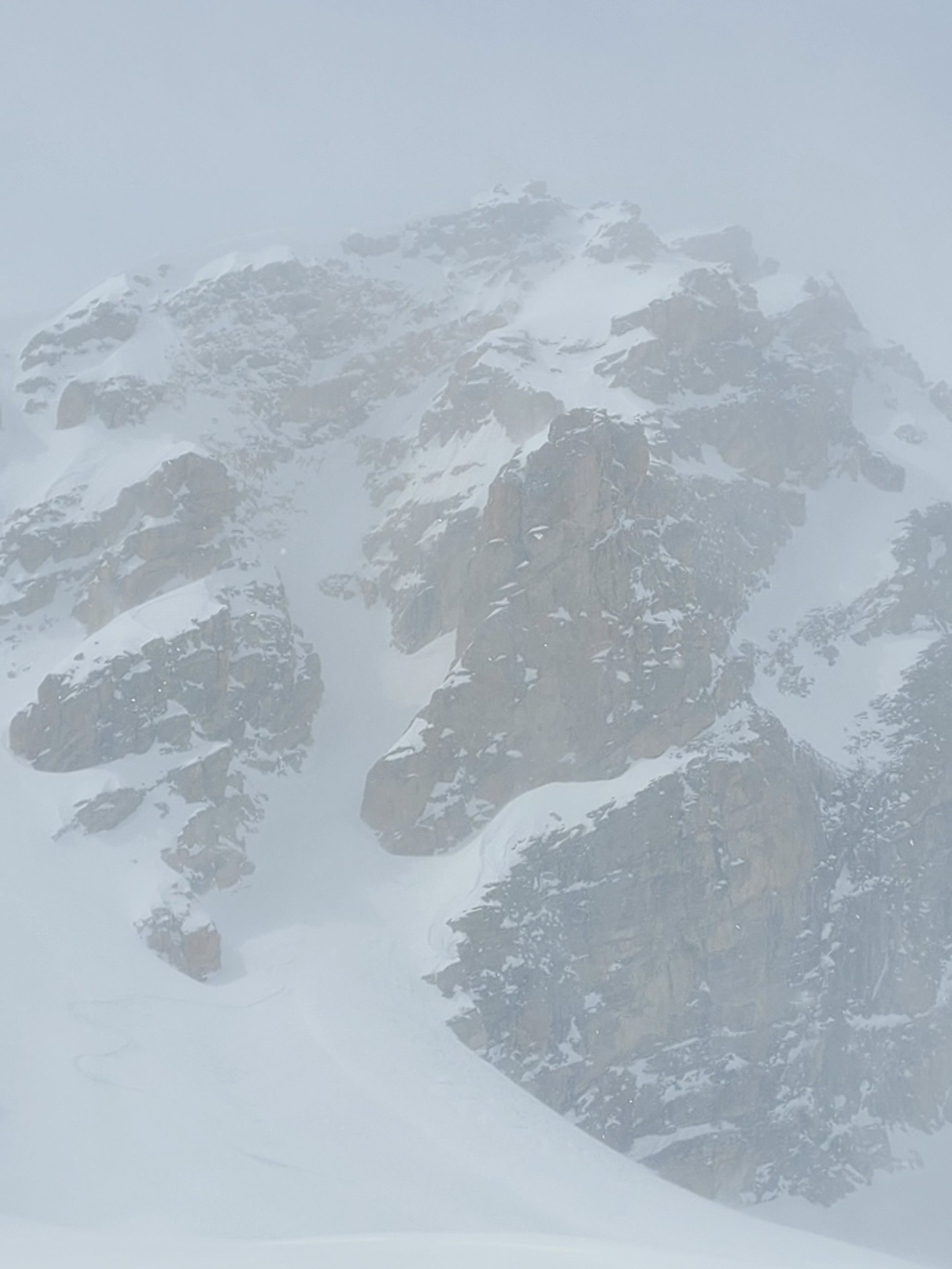 Peak 10,696 is the highpoint and southern terminus of the broad buttress that houses 25 Short and Mavericks, two of the most popular backcountry ski destinations in GTNP. The North Couloir shares a ridge line with three of the most classic entry level Teton couloirs, Turkey Chute, Moonwalk and Chute The Moon. It’s mesmerizing, twisting, cobra shape is striking from the summit of 25 Short, and I reckon thousands of skiers point at it every winter – however, it sees very, very, little traffic. There’s a sloping cliffband in the middle that always seems to make one ponder whether or not they’d be able to keep skis on, and a devilish looking entry that often appears guarded by a nasty network of bulging cornices. For a piddly 850 feet, this couloir packs equal amounts of aesthetics and mystery. It’d been on my second tier hit list for years, one of those lines I talked about regularly yet always had something else more important to do. After skiing the Turkey Chute with Bobbi in chalky powder the day before, and faced with a marginal weather window that beckoned restraint on bigger objectives, I got a bit fidgety and slipped out to give er’ a look.
