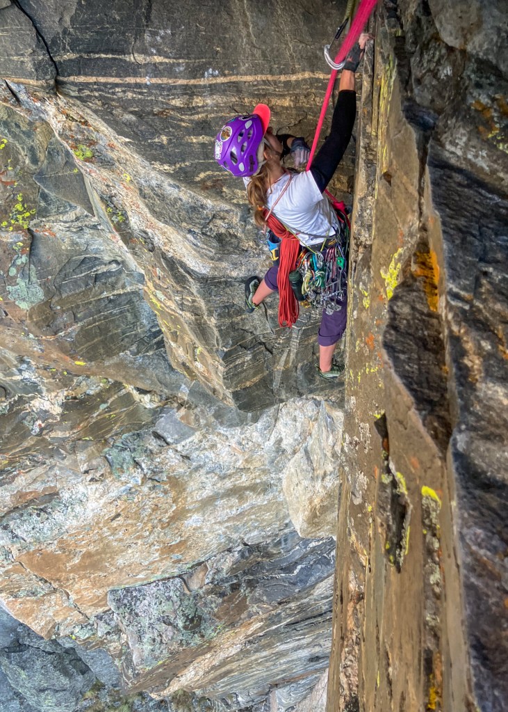 On October 17th Lainey Fellows and I linked Cardiac Aretes, Annals Of Time and Dihedral Of Horrors for an absolutely classic 10 pitch day on three of Death Canyon’s finest 5.9 routes – The Ship’s Prow Triple.