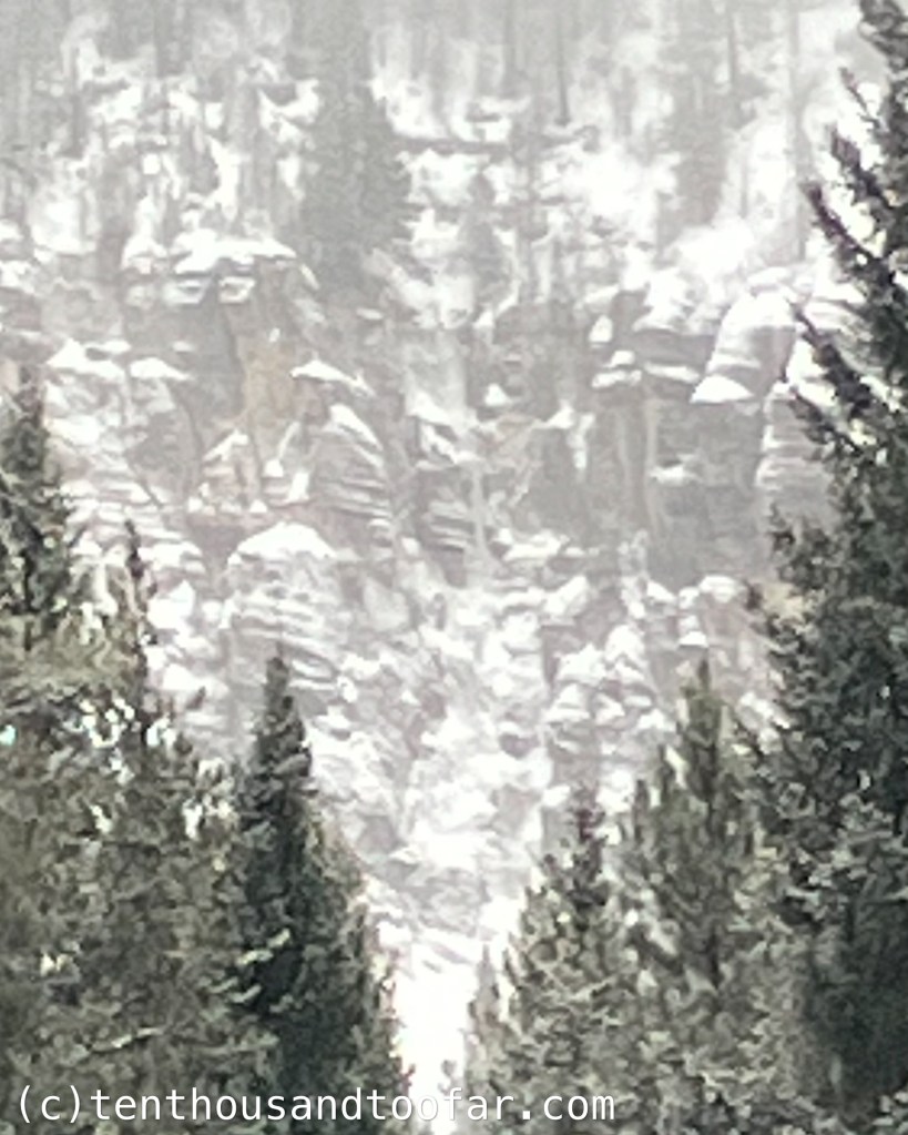 - Some ice. Not fully formed but potentially climbable. No known ascents. See picture below.