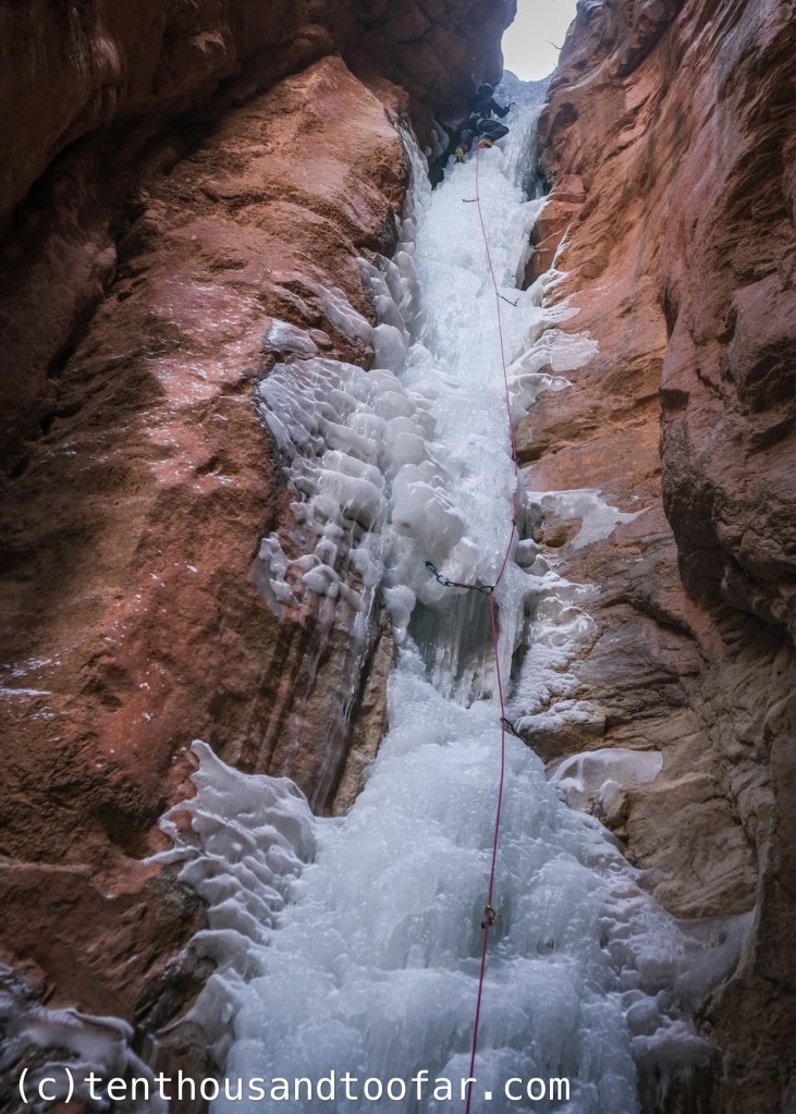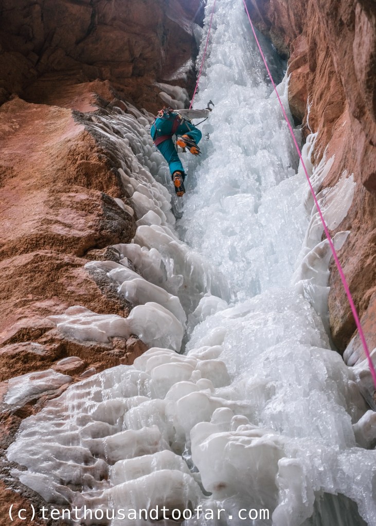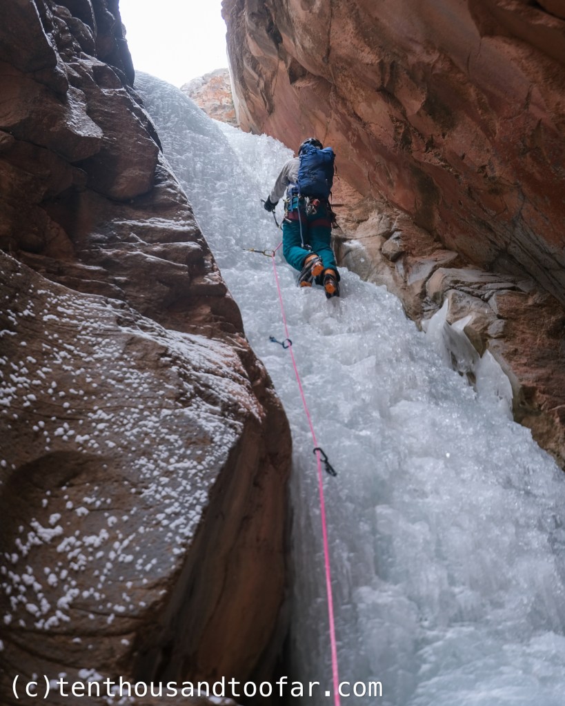 One thought on “Sandstone Ice 2025 Part Three: Hidden Haven (WI4, II) – Parowan Canyon, Utah (01.28.2025)