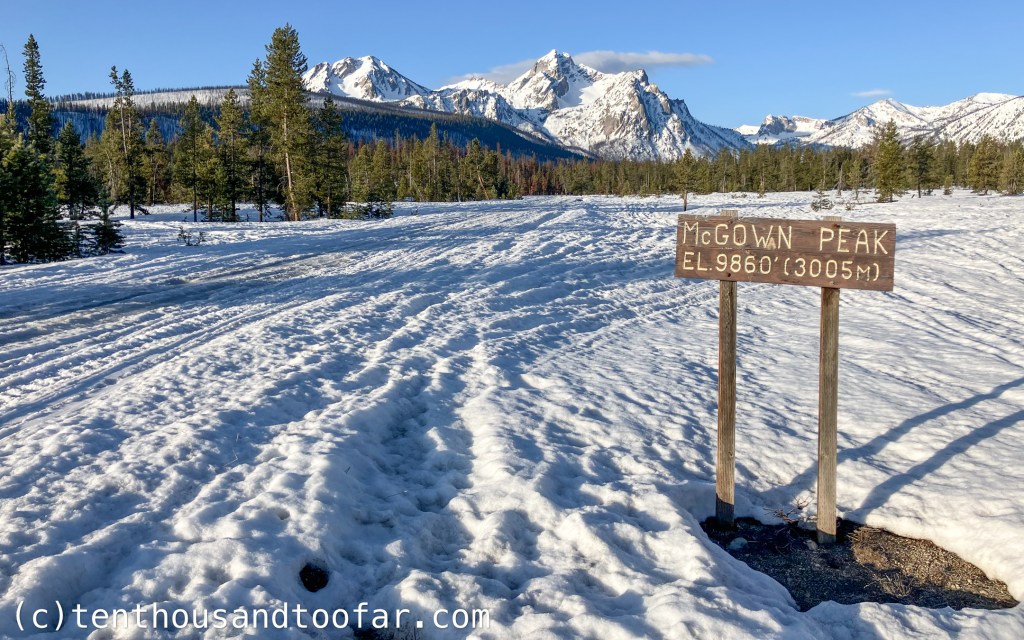 I finished the linkup with a 500 foot climb up the south aspect of McGown’s north shoulder, and firm ski down the KLB Chute. In powder or ambient corn the KLB would be a glorious freeride style ripper, but today it was an underwhelming cocktail of zipper crust and edgeable glaze – oh well. Much like Little McGown, smooth surfaces and spectacular setting trumped snow quality. Below the chute, 800 feet of steep gladed corn skiing led to Stanley Lake, my bicycle, and eventually, the van.