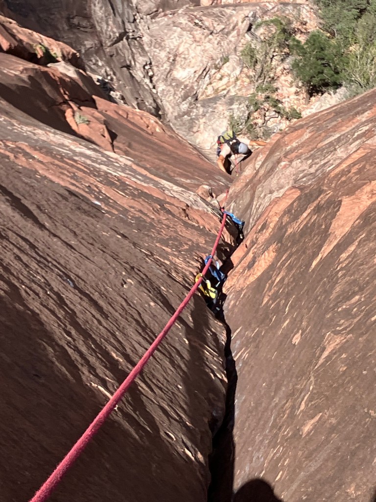 My 5.13 rope gun Jordan was the partner again. He led the insanely intimidating (and sandbagged) 5.10d roof of pitch one with such grace I almost thought I had a chance – wrong! I couldn’t even do all the moves, and ended up penduluming to an adjacent crack to bypass the crux. Pitch two was my only success of the day: an onsight of a cryptic 5.10d stemming corner. An errant foot pop derailed me late into the 5.10c third pitch, and a scary runout on pitch four, 5.11a, brought me back to the belay in shame. No surprise, Jordan made it look 5.9.