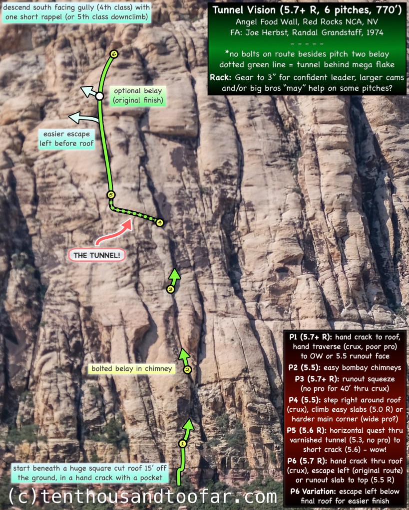For more information on Tunnel Vision and the Angel Food Wall, including the approach and descent, consider buying the Red Rocks guidebook by Jerry Handren, or see Mountain Project.
