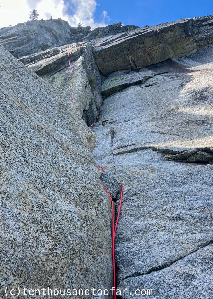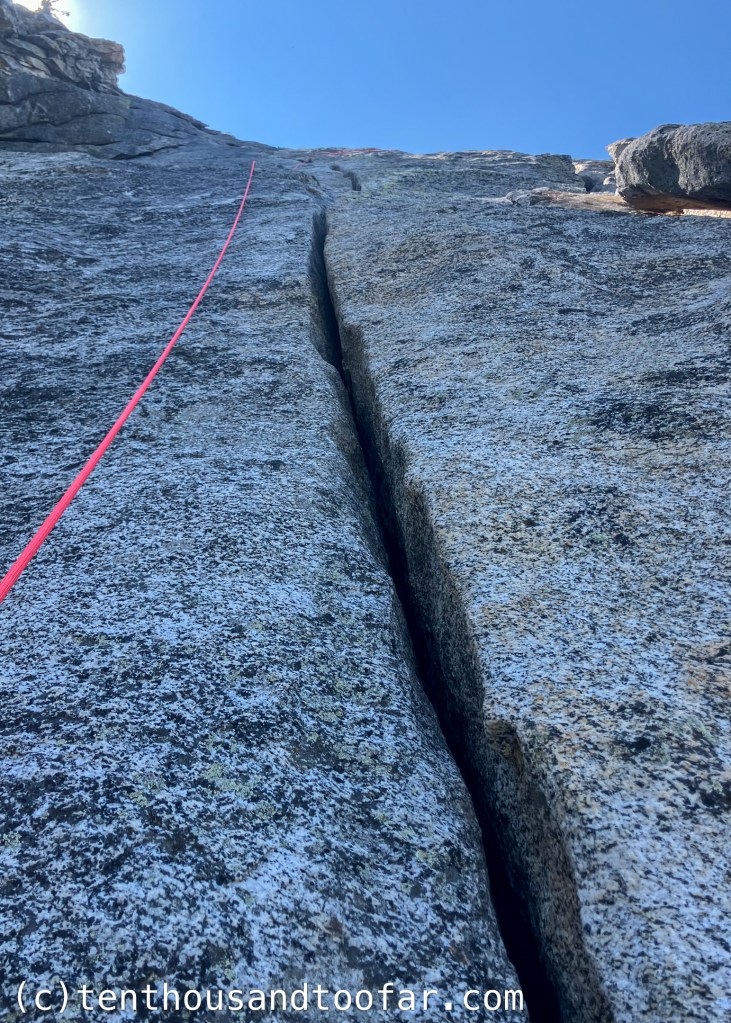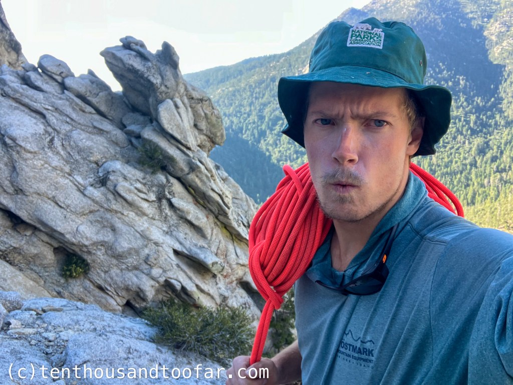 For the climbing nerds wondering, I do not own a Silent Partner. My belay device is a regular Gri-Gri (oriented upward with an Avant Climbing neck bungee), and my cache loop device is a Micro-traxion. I do not use any other specialized gizmos like anti-cross-loading clips, or carabiner attachments/prusiks to prevent back feeding. Instead, I use a super beefy auto locking carabiner strong enough to hold a dynamic fall in the unlikely event of cross-loading, and intermittent clove hitches to prevent back-feeding. Lastly, I do not have a “back up” for the belay device. I’ve made the personal decision to trust the venerable Gri-Gri to catch without a break hand. All these decisions were made based on personal risk tolerance. Once I refine my system on a few more routes, I will do a detailed dive on how I rope solo. Sneak peek: The ensuing day I climbed a much harder route and took some lead falls. I am still alive. Stay tuned for the next article.