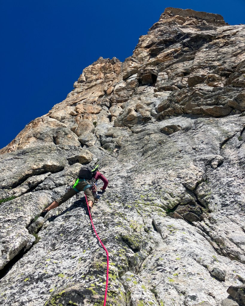 On Thursday June 19th, 2025, I climbed Irene’s Arete with new-to-the-Tetons desert coworker Kenzi Stemp, including a two pitch direct start which has surely been climbed before, but is undocumented and often skipped. Higher, we explored a few harder variations with pleasant rewards. This article will focus solely on the variations we climbed, and others I’ve climbed over the years, which add tremendous value to this already great route.