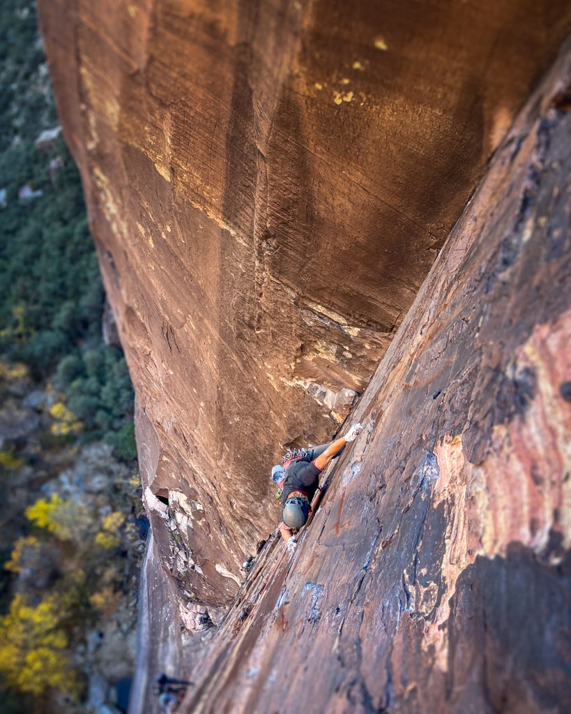 On Tuesday November 10th, 2025, Bobbi Clemmer, Joy Seward and I climbed Edge Dressing via Chasing Shadows on Mescalito Dome. Woah – what a final pitch!