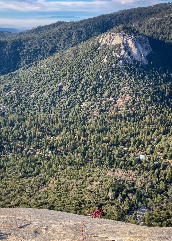 After 12 days with family for Thanksgiving, Bobbi and I hit the road again. Before heading to the warmer lands of Joshua Tree we jumped on a brief late season weather window in Idyllwild. Multi-pitch alpine granite is our favorite climbing style, and the season for climbing anywhere besides the desert is rapidly closing. To dust off the cobwebs of food overindulgence and late nights, we kicked off our three day Idyllwild stay with the Tahquitz’s most popular moderate classic, Fingertrip.