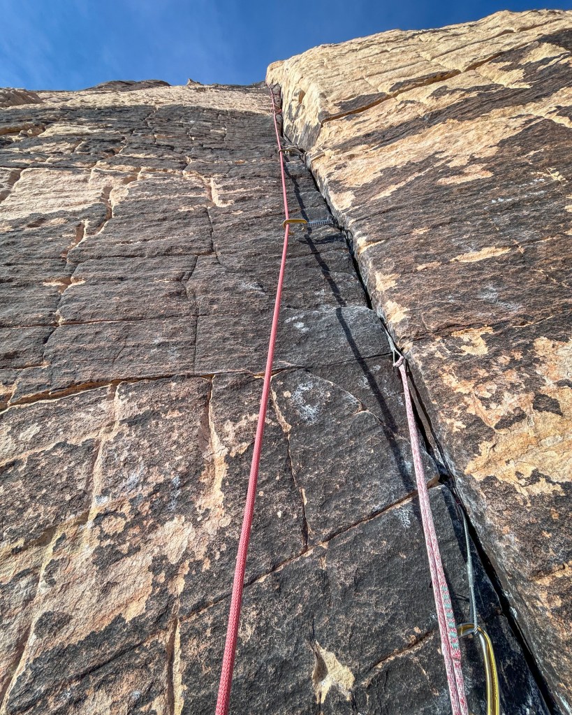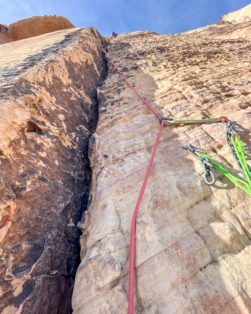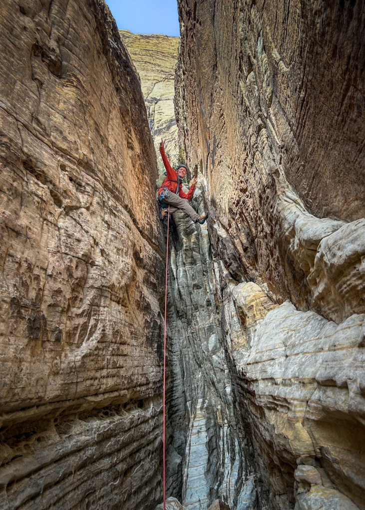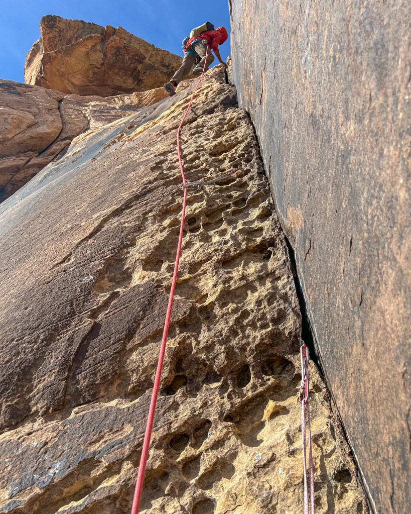 On December 18, 2025, Bobbi Clemmer and I channeled our inner Teton spirit, raging up the 2000 foot mega-classic Solar Slab as our final climb of 2025. We climbed the full route and scenic “walk-off” to Oak Creek in a civilized nine hours car to car. We also climbed a few harder variations to the standard route.