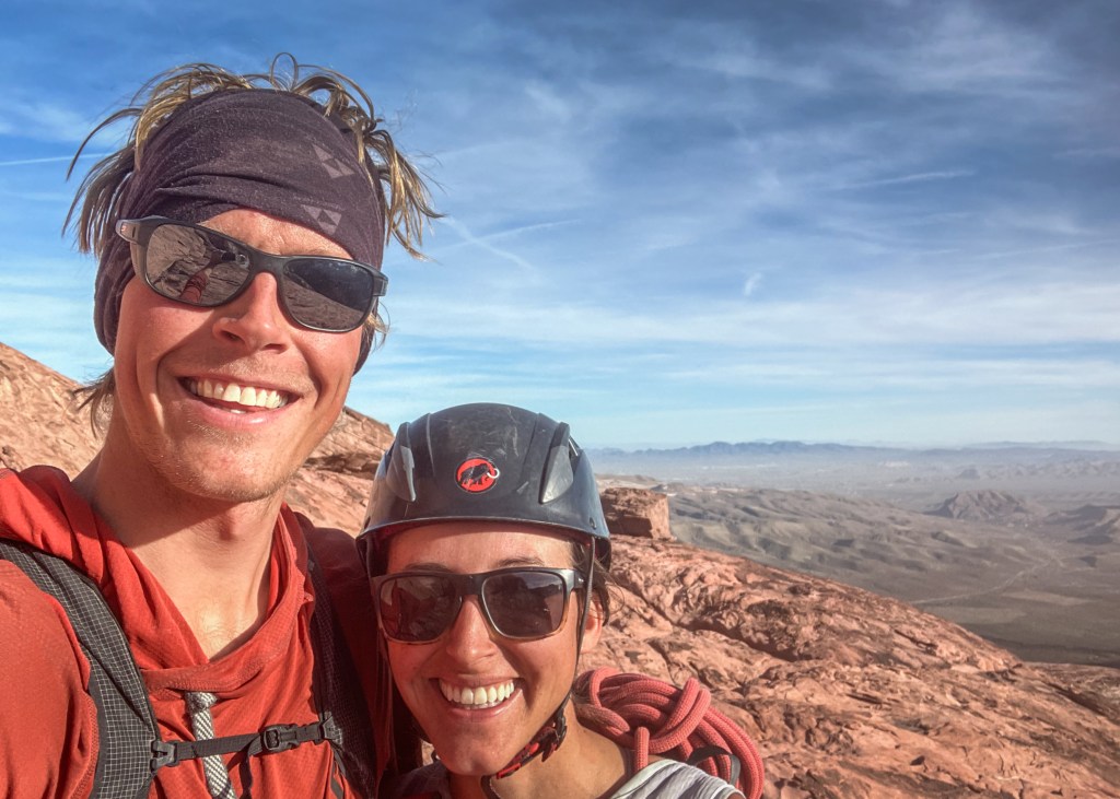 Until 2025 Bobbi and I have spent every climbing summer in the Tetons, a mythical land of lengthy approaches, soaring alpine ridges and headlamp descents. Due to equal burdens of altitude, volatile weather and complex logistics, the bulk of our climbing was historically sub-maximal, long routes 5.9 and below. This summer was different. Our new home crags Red Rocks and Idyllwild also offer ample adventure climbing, but the approaches, descents, weather threat and altitude tax are exponentially less. We were able to climb harder multi-pitch routes than ever before without sleep deprivation or fears of getting benighted. Cranking hard high off the deck was addicting. Our previous seasonal pyramid of 5.7 to 5.9 alpine routes was replaced with almost constant 5.10 to 5.11- crack climbing. Naturally, our ability levels and inspiration sky rocketed. But as our fingers grew stiff as our shoulders squeaky, we realized something was missing. For our final climbing day of the 2025 season we would trim our rack, set alarms and shoot high, Teton style.