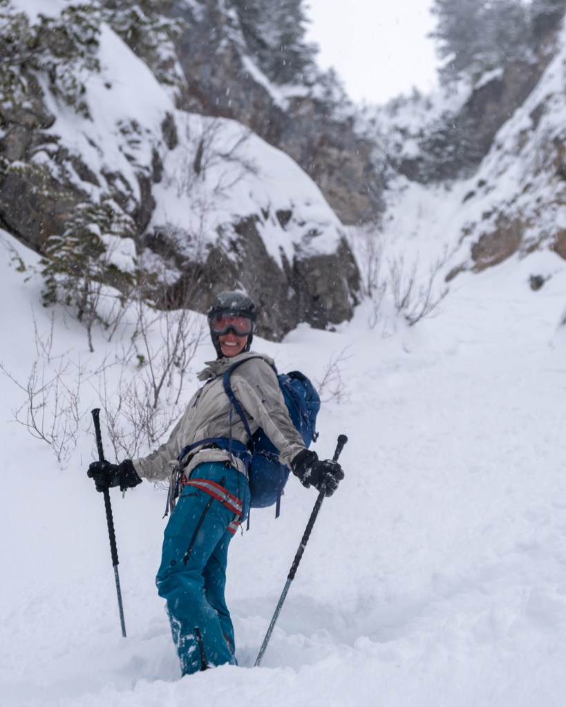 Two days later Bobbi Clemmer and I completed the same tour. This is the first time I’ve ever repeated a tour in consecutive outings, but I was so impressed by the terrain variety, progression and flow that I wanted to show Bobbi. Turns out, she thought Alta Dena North was awesome. As a fourth year skier taught exclusively in the backcountry, I was impressed by her composure navigating the complexities of Teton Canyon. While no pitch is too steep or too exposed, the route-finding intensive nature of this line deserves respect.