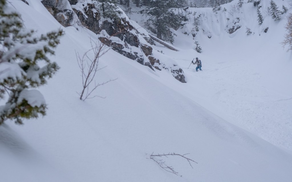 On February 9th our month-long Teton high pressure curse finally broke. Jed Porter and I snuck out for a few afternoon laps on Chicken Knob, bagging an interesting line I’ve been eyeballing for years – “Alta Dena North” – another complex, forested, and route finding intensive Teton Canyon couloir. Bobbi Clemmer and I returned two days later, because it was just that good!