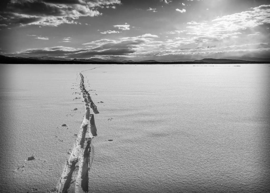 Gliding back to the car I reflected on the magic of Peak 10,686. With an amazing buffet of multi-thousand-foot ski lines on three aspects, a rarity for the Tetons, it’s a true skier’s peak. The south, southeast and east face offer long and open fall line bowl skiing, as well as pleasant old growth ridges. The north face has an epic couloir (North Face Couloir) on par with classic descents in the core range. The remote location far north of Mount Moran, including the three mile Jackson Lake crossing and almost certainly no skin track, repels crowds. Views are spectacular. On 10,686, skiers have a remarkable choice of ski terrain suited to all abilities and snowpack conditions, accented by a wilderness feel reminiscent of Southwest Montana or Central Idaho. Alongside Albright Peak, 25 Short and Peak 10,333 (Leeks Peak), 10,686 is one of the great front-country ski venues of the Teton Range.