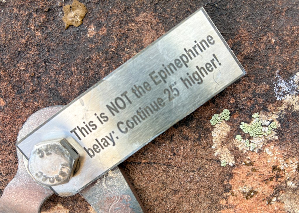 While this route will deservedly never reach the classic status of Epinephrine, Sour Mash or Dream Of Wild Turkeys, it’s still a worthy adventure as an uncrowded yet sustained 5.10 with more variety than the average Black Velvet outing. Norepinephrine is seldom really dangerous, but bolts are far enough apart to keep things exciting, and savviness with irregular traditional gear is requisite for the blanks. The only real detriment was the contrived nature of pitches four and five, the most egregious being pitch four. Realistically, the pitch should move left at the first bolt and earn the humble grade of 5.8. I find it difficult to focus on crux climbing with a more logical line of larger holds a body length away, but perhaps that’s a “me problem”. I can own it – we don’t sport climb much.